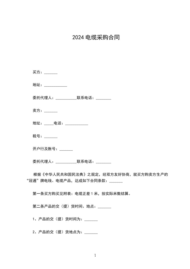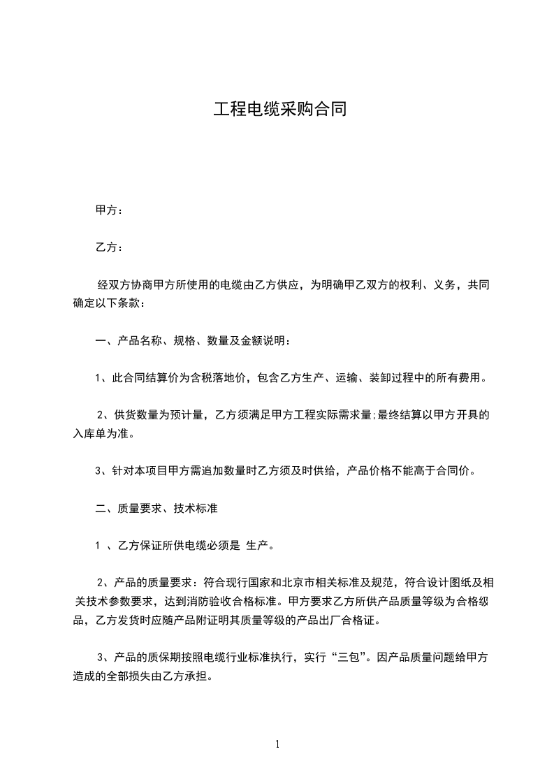 1 、乙方保证所供电缆必须是 生产。