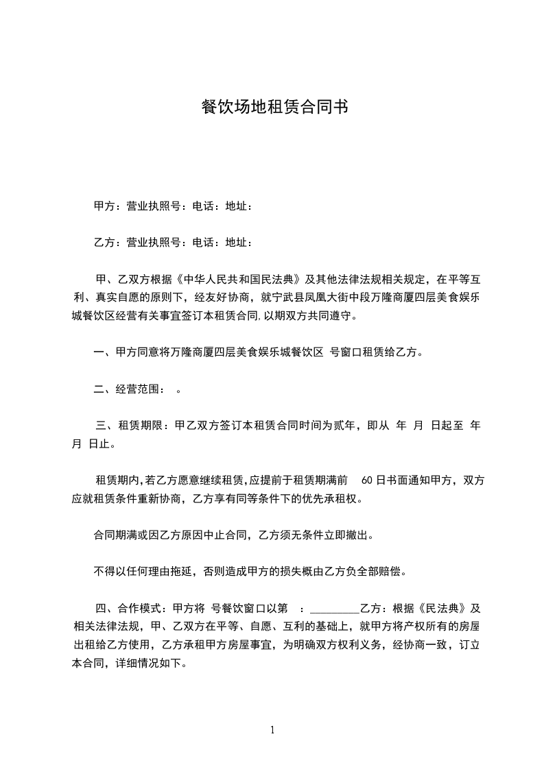 甲、乙双方根据《中华人民共和国民法典》及其他法律法规相关规定,在平等互利、真实自愿的原则下,经友好协商,就宁武县凤凰大街中段万隆商厦四层美食娱乐城餐饮区经营有关事宜签订本租赁合同,以期双方共同遵守。
