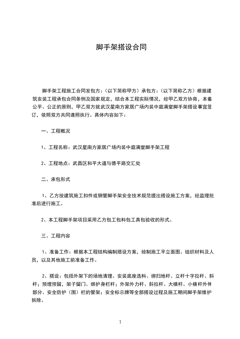一、甲方发包给乙方的劳务施工项目内容范围如下: