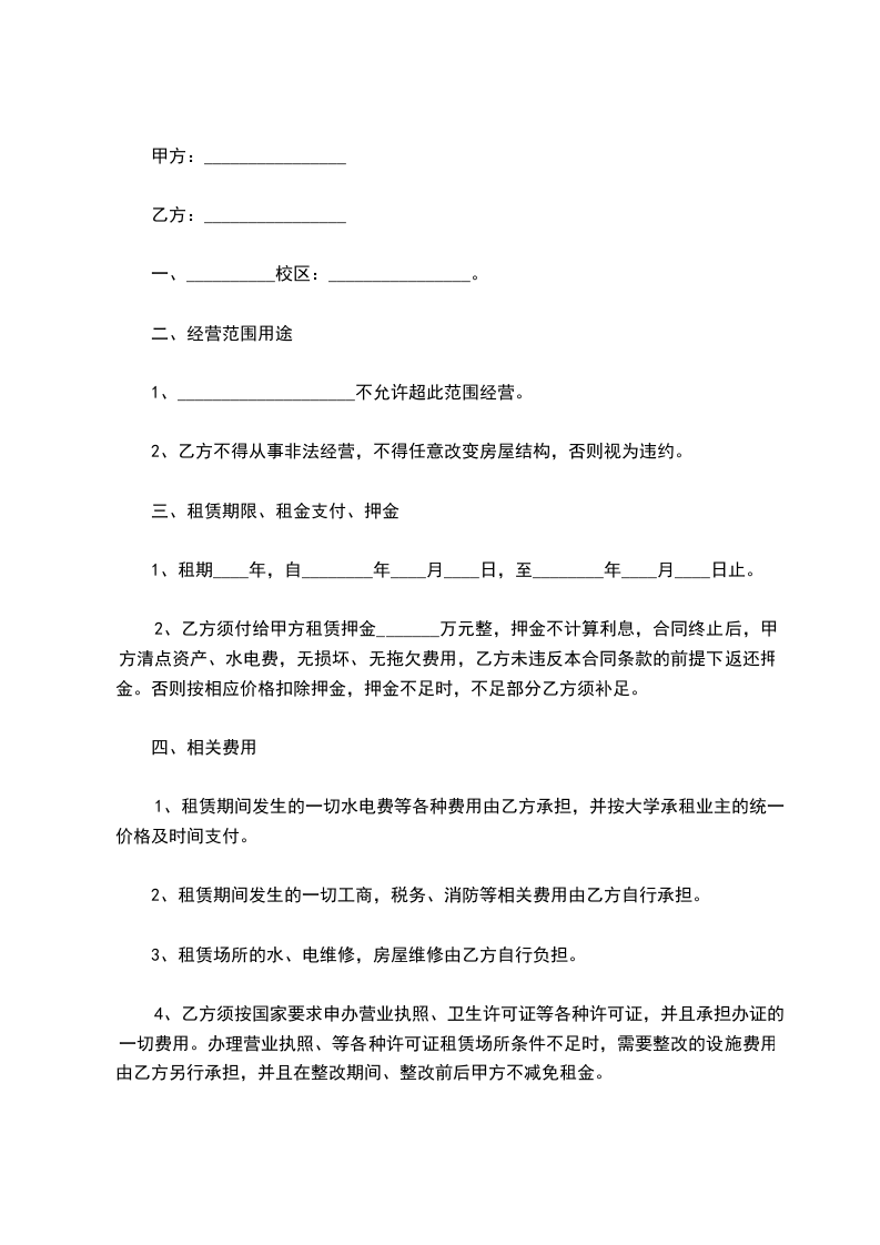 三、承包期限:从 年 月 日起至 年 月 日 止。租赁期为一学年。