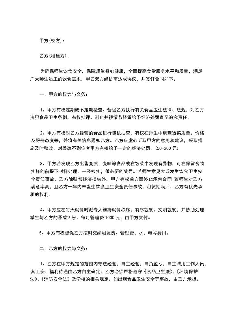 为确保师生饮食安全,保障师生身心健康,全面提高食堂服务水平和质量,满足广大师生员工的饮食需求,甲乙双方经协商达成协议,并签订合同如下:
