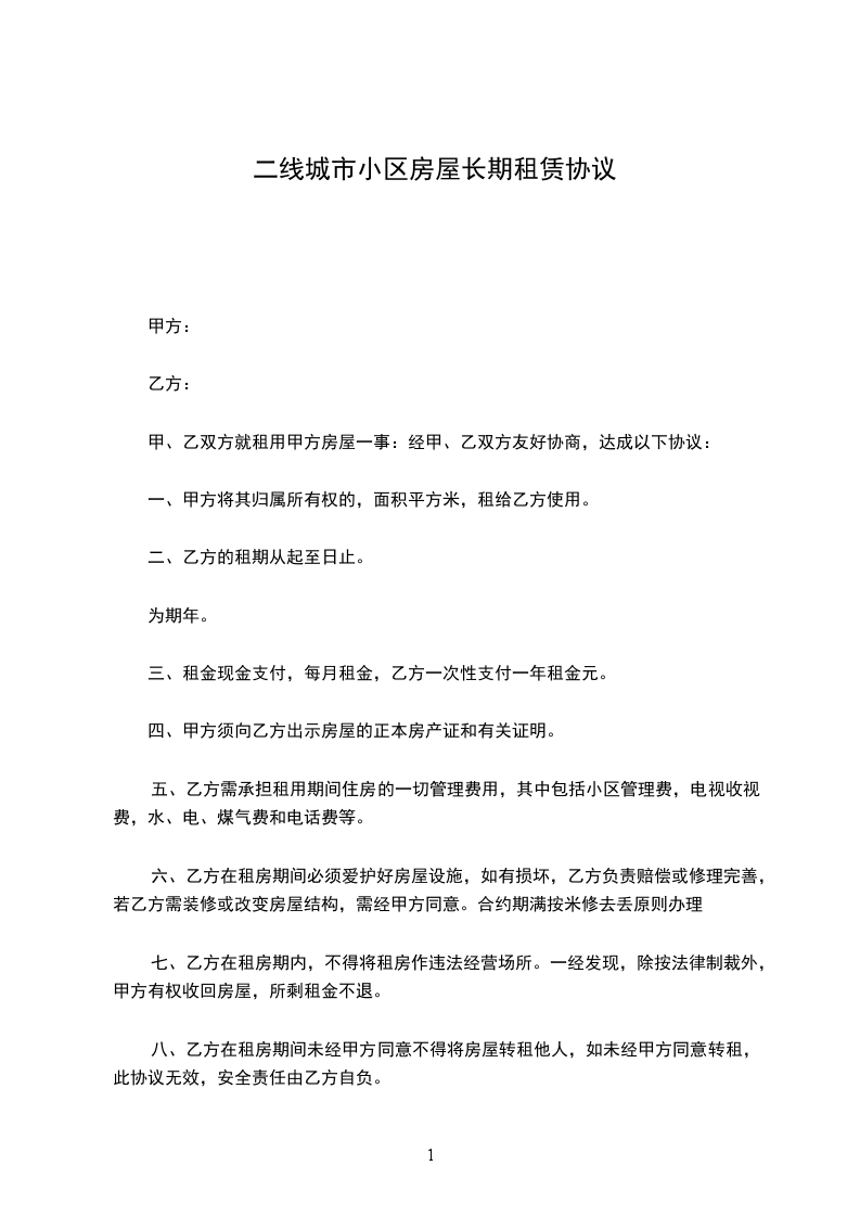 1、该房屋租赁期共一年。自_____年_____月_____日起至_____年_____月_____日止。