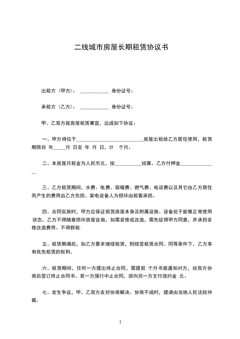 出租方:______(以下简称甲方)