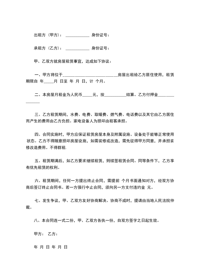 4、租赁期满,甲方有权收回出租房屋,乙方应如期交还。乙方如要求续租,则必须在租赁期满前一个月内通知甲方,经甲方同意后,重新签订租赁合同。
