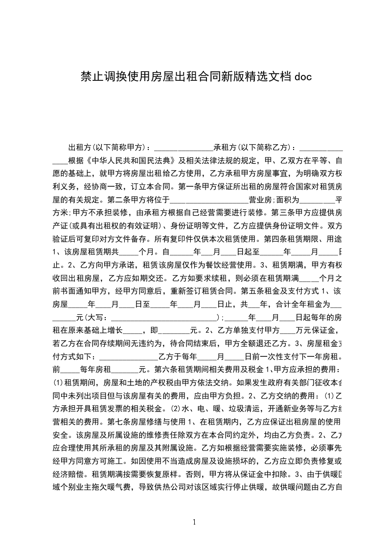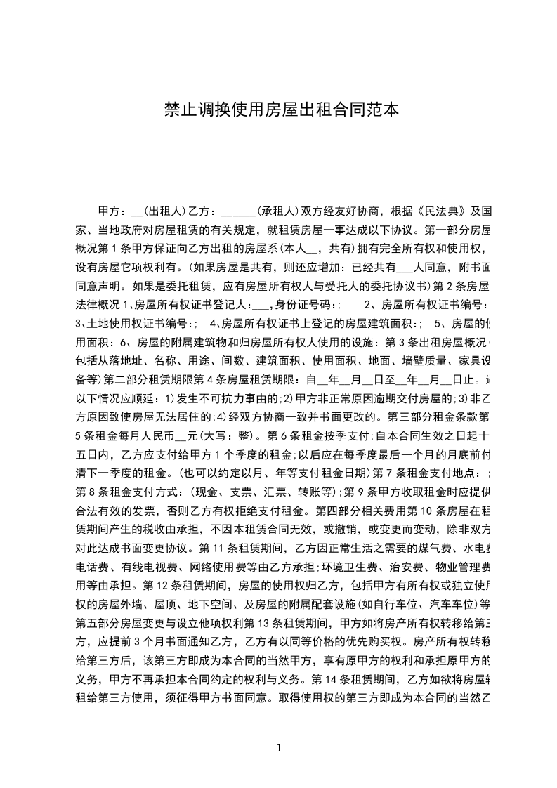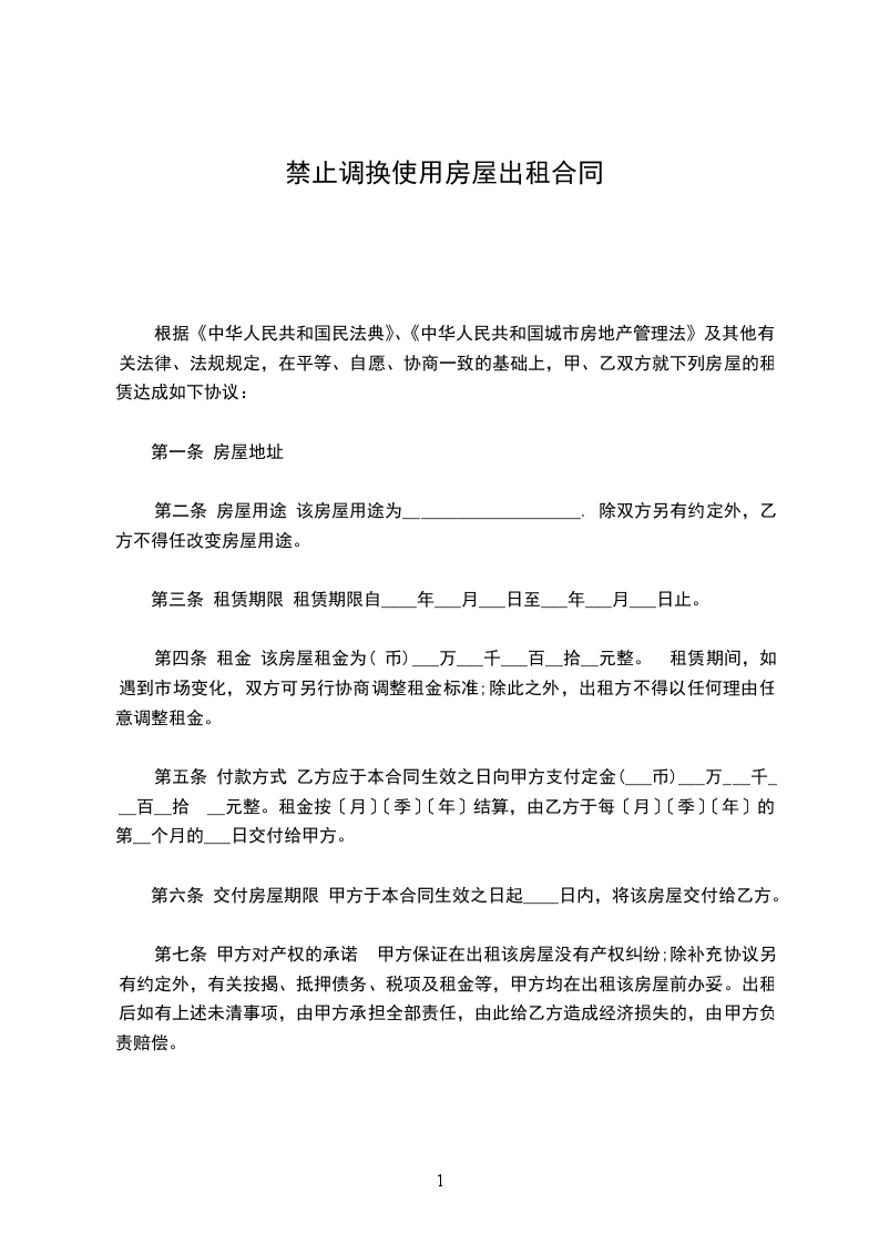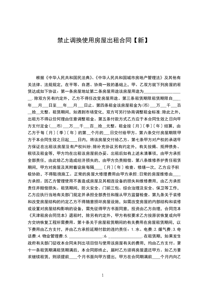 第二条 房屋用途 该房屋用途为____________________. 除双方另有约定外,乙方不得任改变房屋用途。