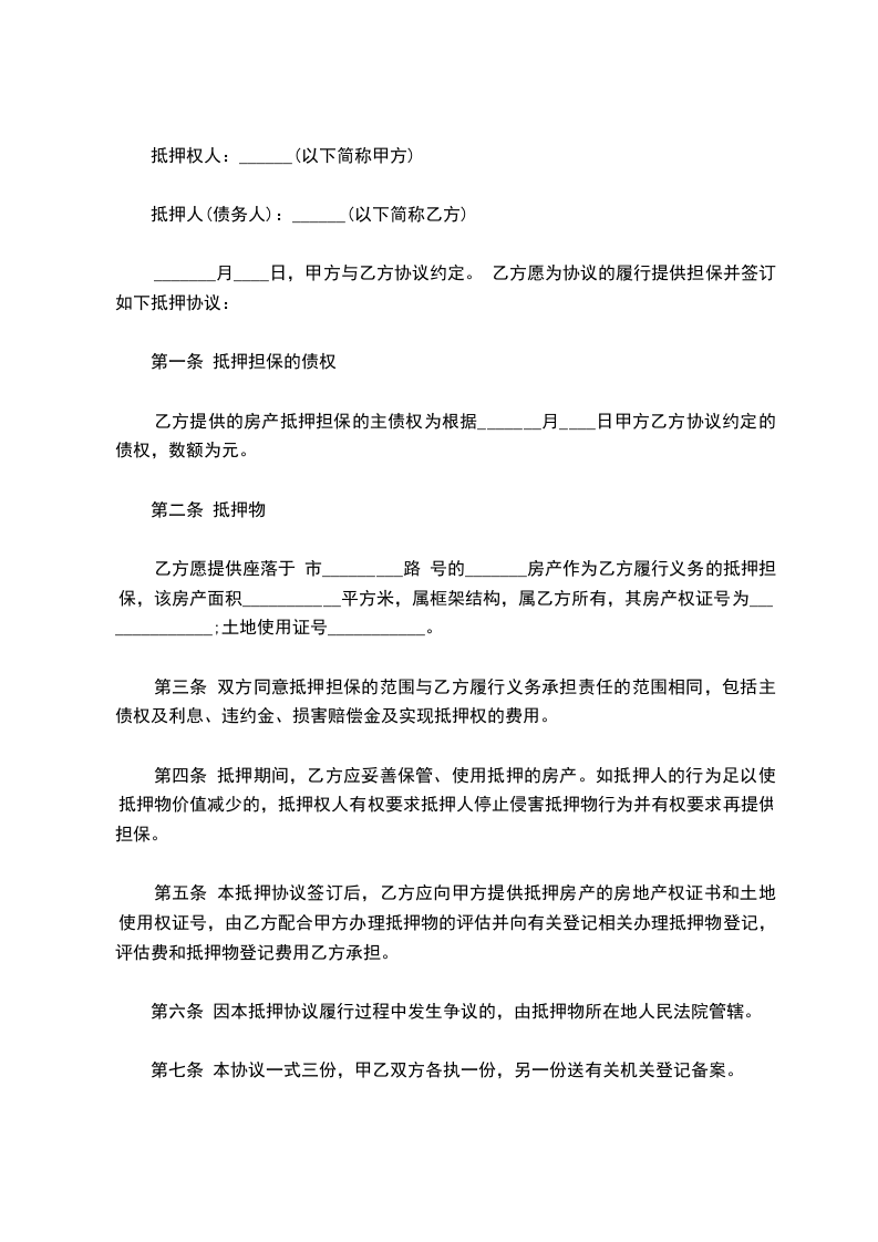第七条 甲方对房屋产权的承诺。