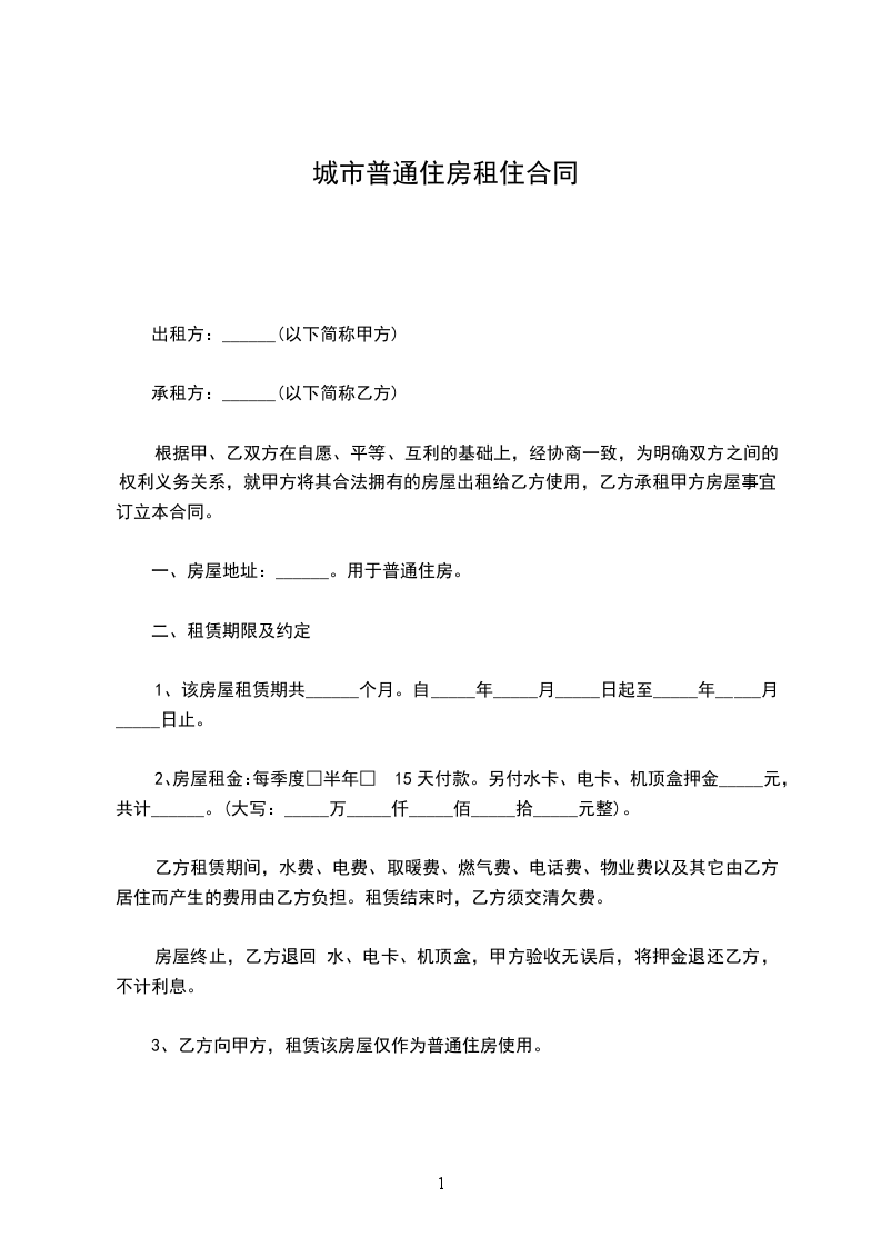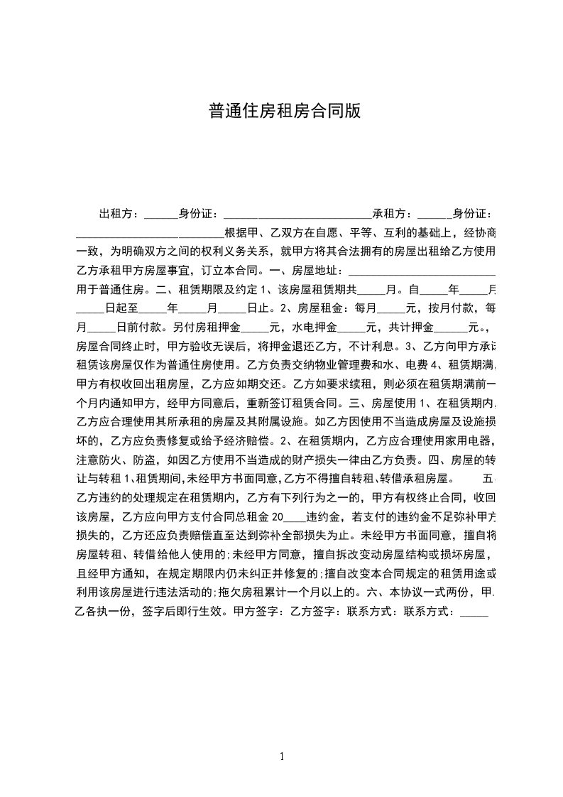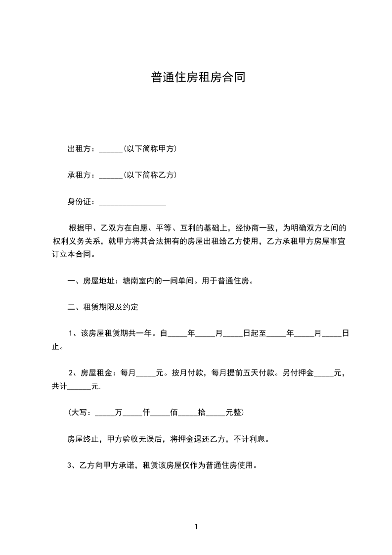 3、乙方向甲方承诺,租赁该房屋仅作为普通住房使用。