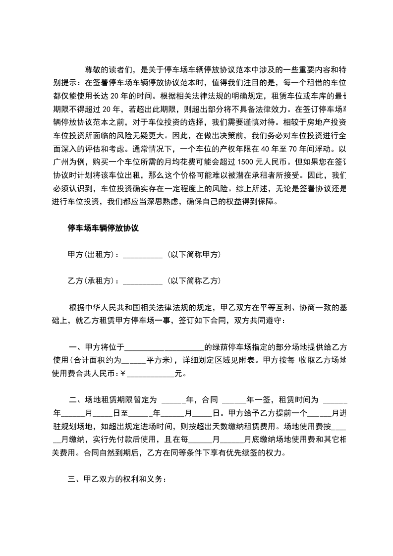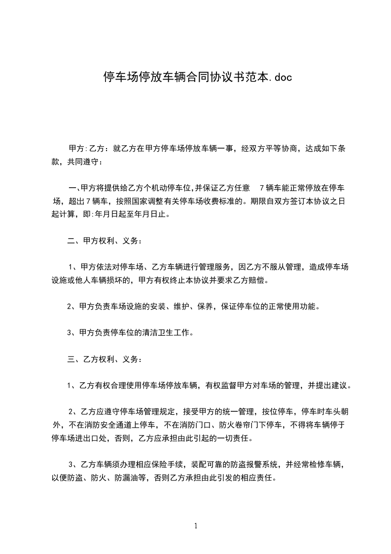 根据中华人民共和国相关法律法规的规定,甲乙双方在平等互利、协商一致的基础上,就乙方租赁甲方停车场停放车辆一事,签订如下合同,双方共同遵守: