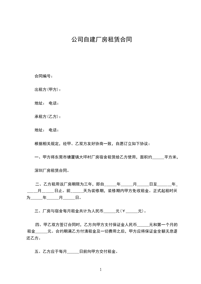 第十条 从签字之日起租用期必须有_________年时间,否则不退押金。如果_________年之内甲方续建、转卖,乙方必须无条件搬出。甲方不负乙方任何责任。