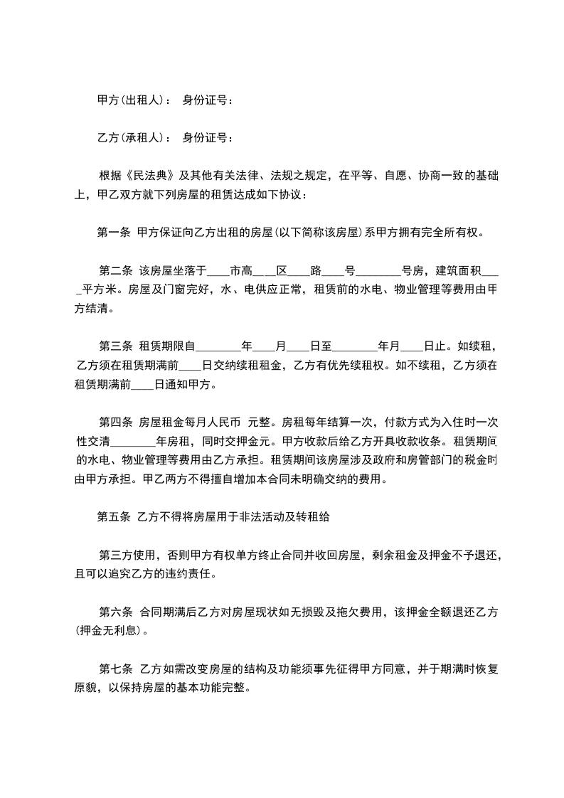 第二条 租金每月人民币_________元,先付后住,不得拖欠。