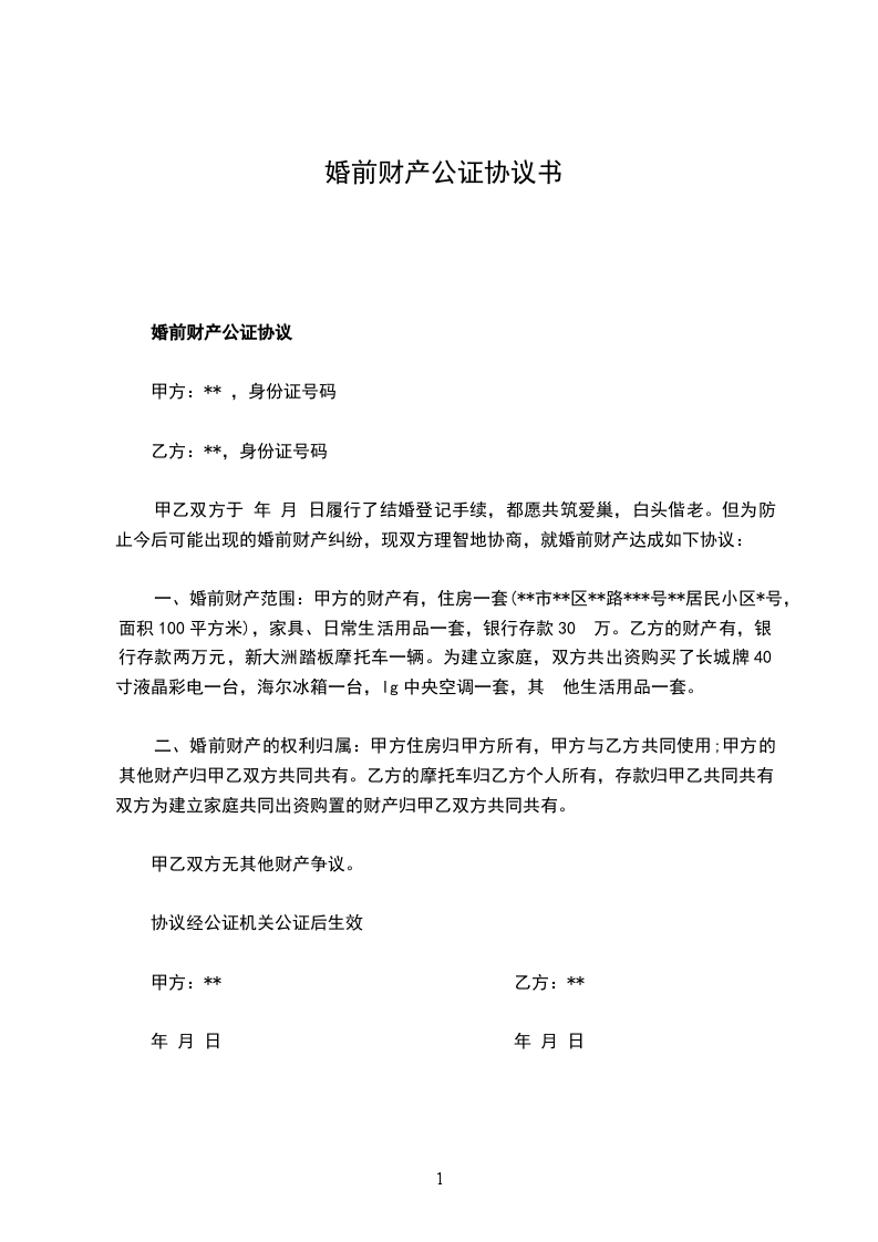 婚前财产公证协议