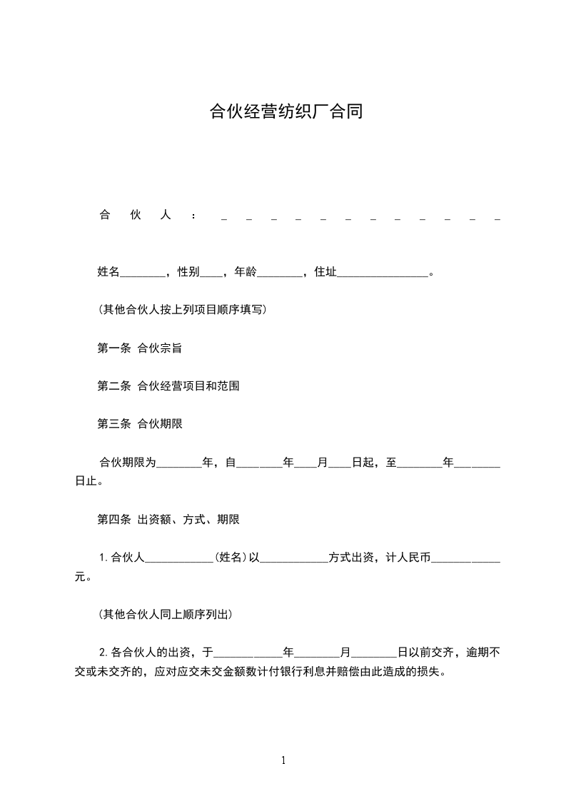 第一条 合伙宗旨