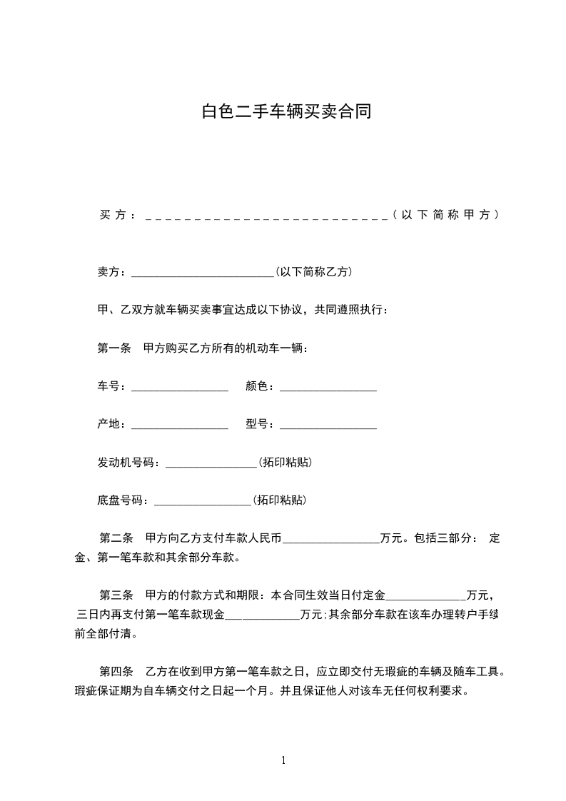 第一条 甲方购买乙方所有的机动车一辆:
