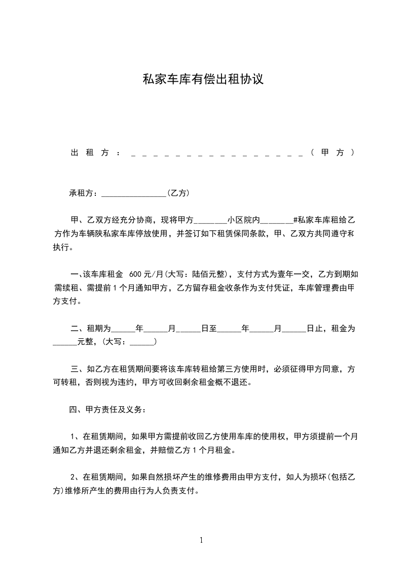 (1)金额。乙方租赁本停车位每年应向甲方支付租赁费为人民币 仟 佰 元 角 分(¥ 元)。该租赁费□包含/□不包含本小区物业管理单位收取的停车管理费。
