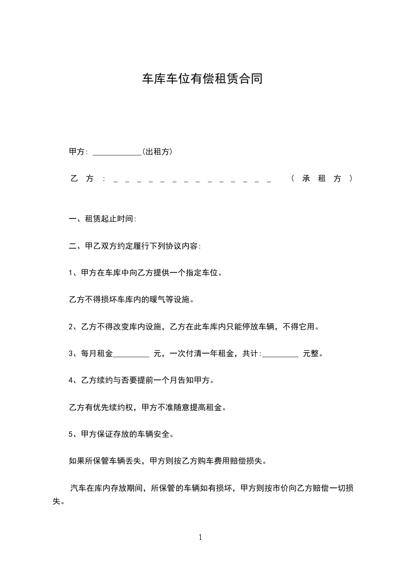 乙方租用本停车位期限为 年,自 年 月 日起至 年 月 日止。在乙方向甲方支付全部本停车位租赁费后,甲方同意于 年 月日前,将本停车位交予乙方使用。