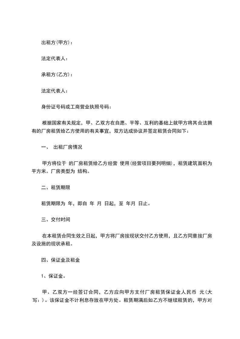根据国家有关规定,甲、乙双方在自愿、平等、互利的基础上就甲方将其合法拥有的厂房租赁给乙方使用的有关事宜,双方达成协议并签定租赁合同如下:
