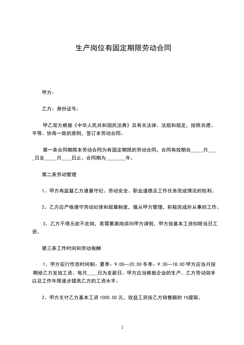 第一条合同期限本劳动合同为有固定期限的劳动合同,合同有效期自_____月____日至_____月____日止。合同期为________年。