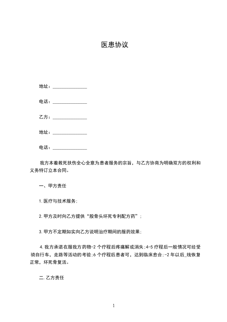 我方本着救死扶伤全心全意为患者服务的宗旨,与乙方协商为明确双方的权利和义务特订立本合同。