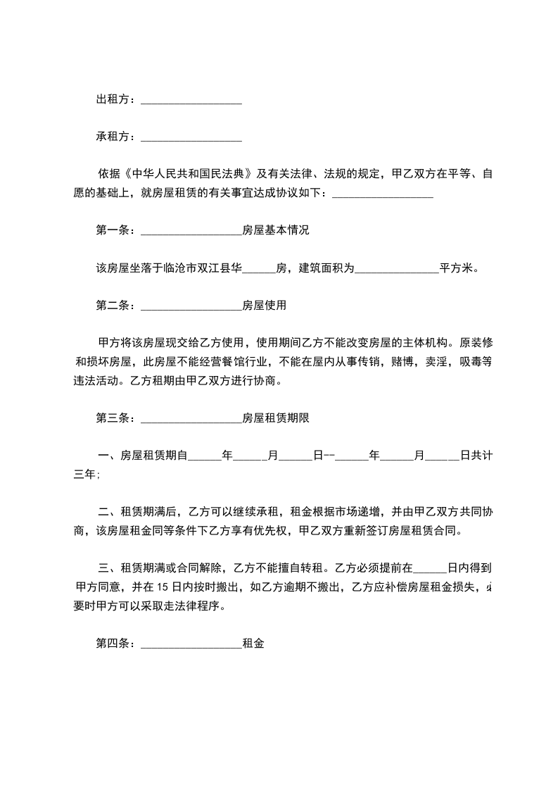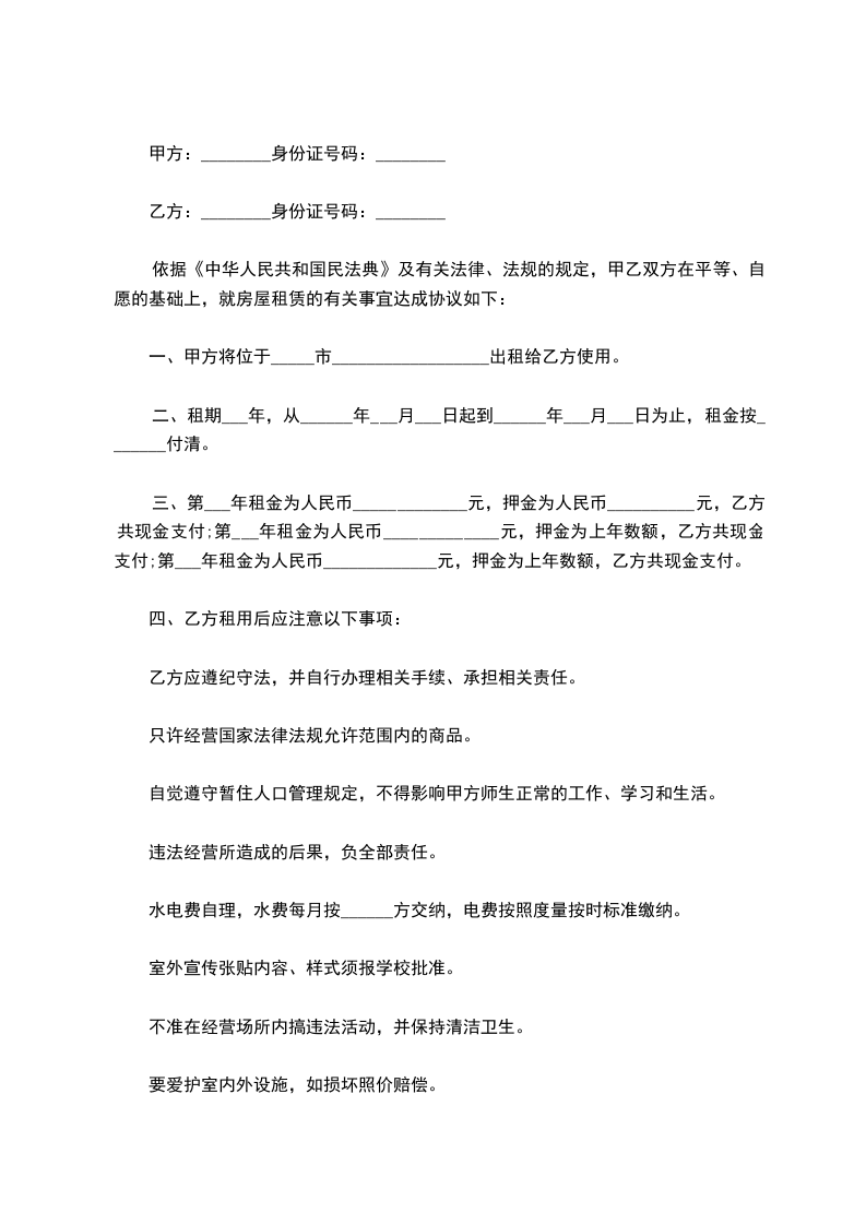 乙方为合法住宿之需要,就租用甲方房屋事宜,双方经充分协商,达成如下一致协议条款。