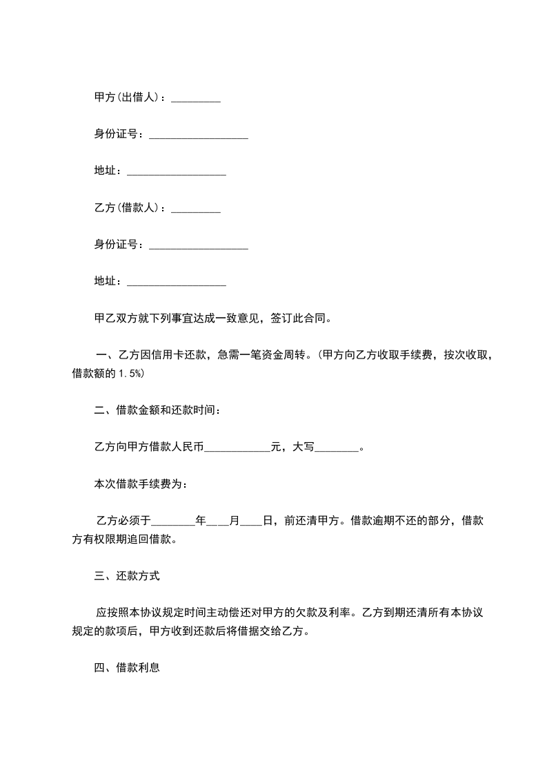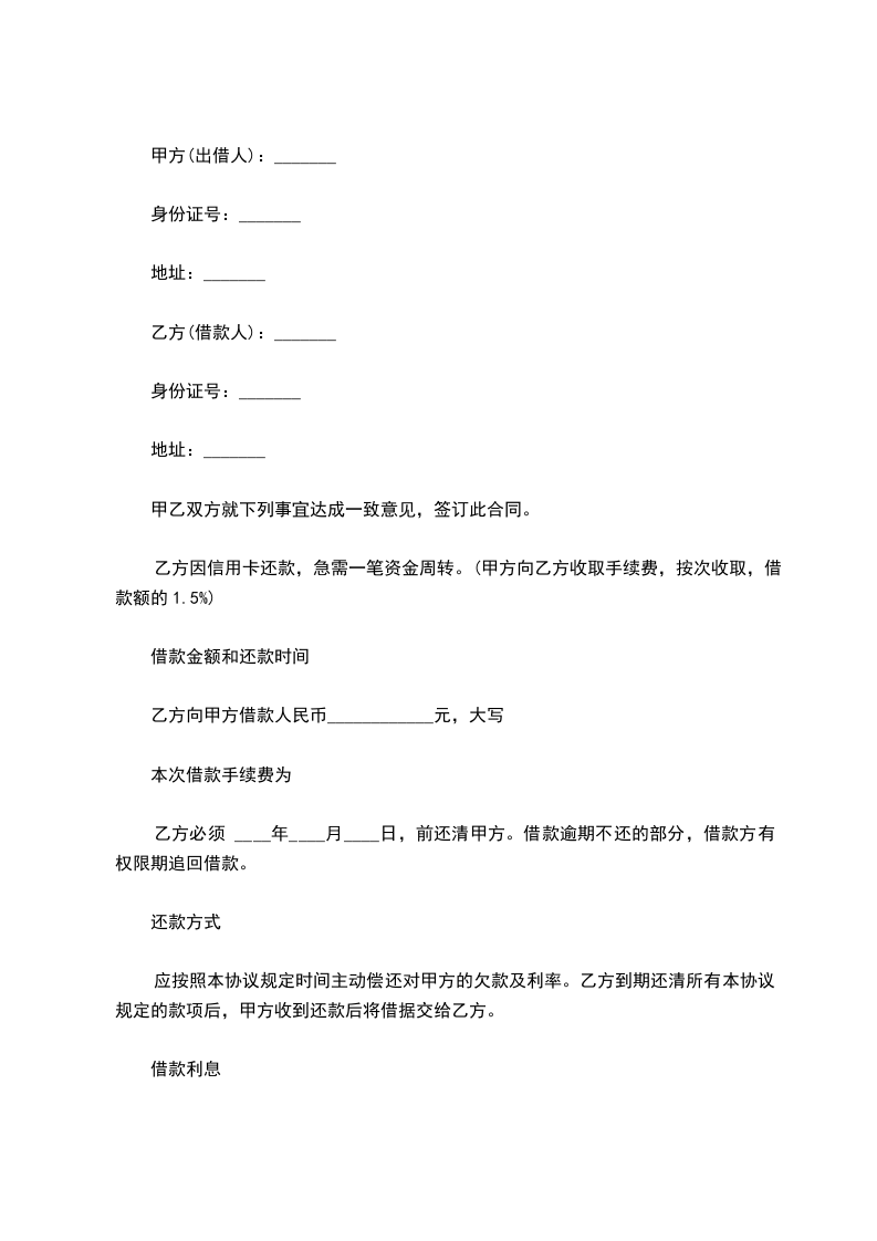 自支用借款之日起,按实际支用数计算利息,甲方向乙方收取手续费,按次收取,借款额的1.5%,借款方如果不按期还款,逾期部分按天加收利率0.5%.
