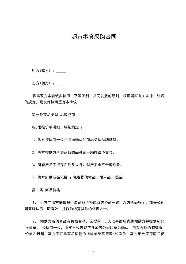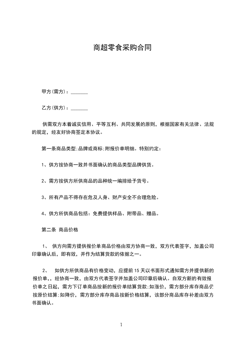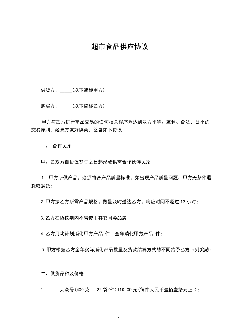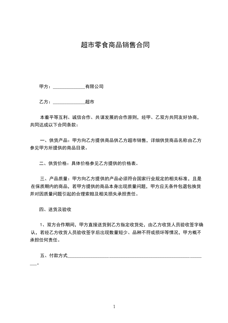一、供货产品:甲方向乙方提供商品供乙方超市销售,详细供货商品名称由乙方参见甲方所提供的商品目录。