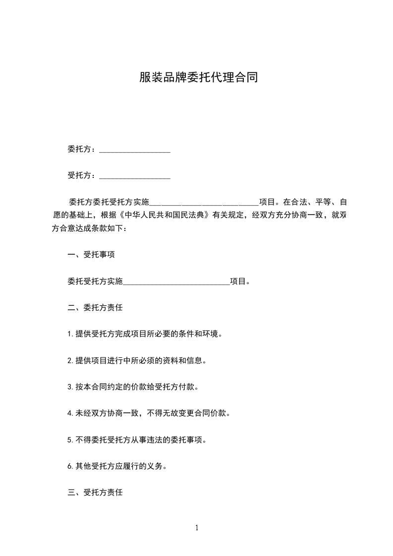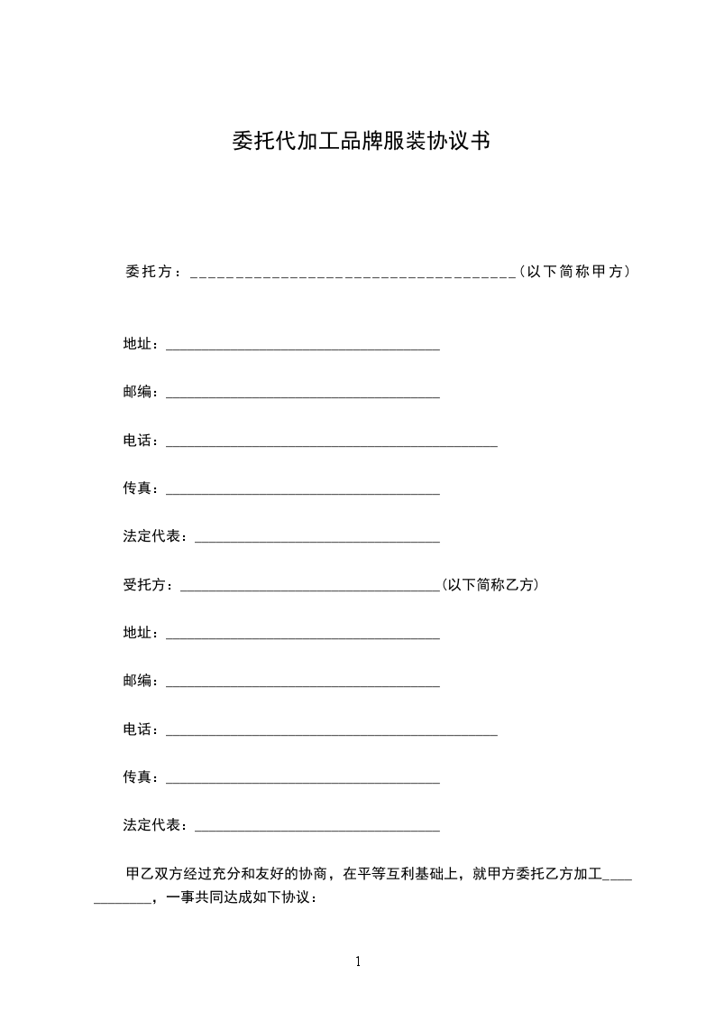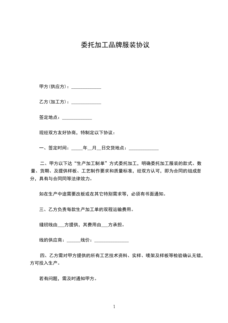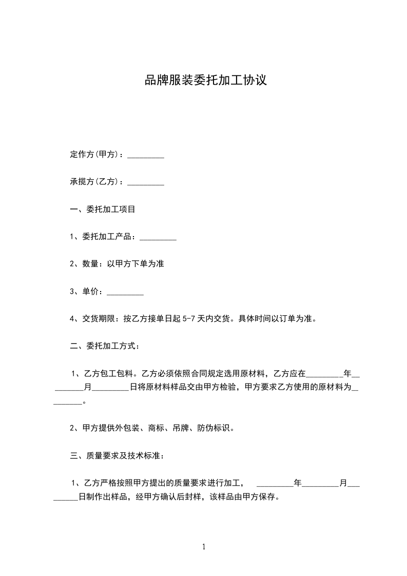 兹有委托定做服装,根据双方协商,达成以下协议并共同遵守。