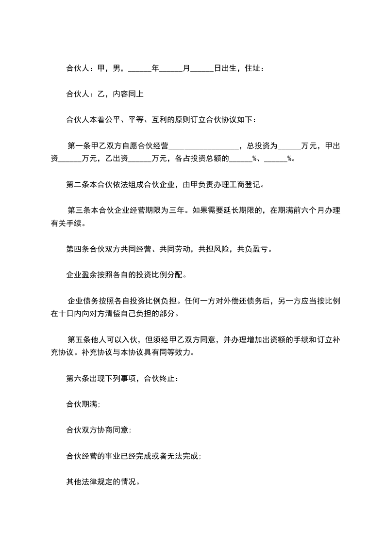 合伙人:甲,男,______年______月______日出生,住址: