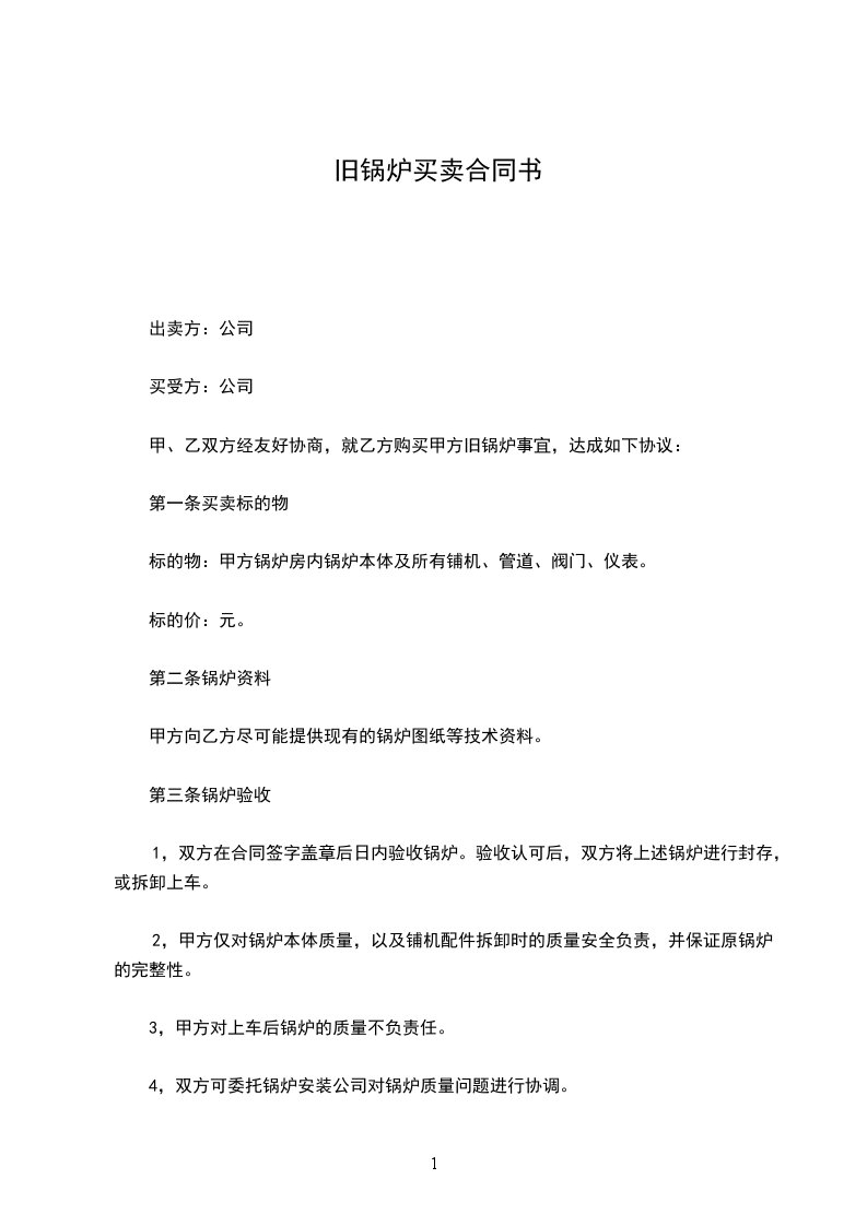 甲、乙双方经友好协商,就乙方购买甲方旧锅炉事宜,达成如下协议: