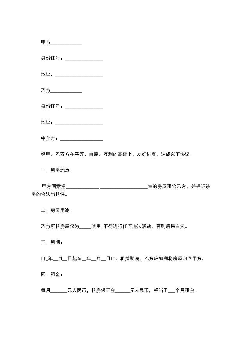甲方同意把__________________________________室的房屋租给乙方,并保证该房的合法出租性。