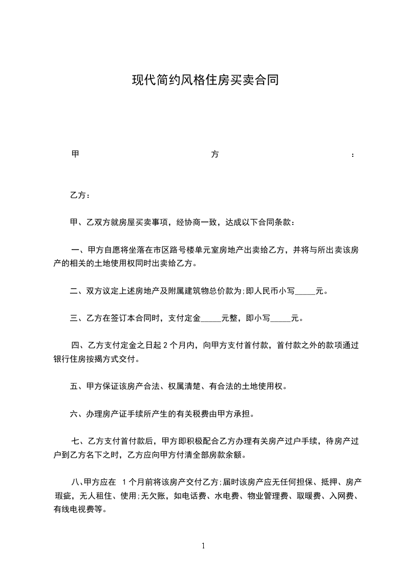八、甲方应在1个月前将该房产交付乙方;届时该房产应无任何担保、抵押、房产瑕疵,无人租住、使用;无欠账,如电话费、水电费、物业管理费、取暖费、入网费、有线电视费等。