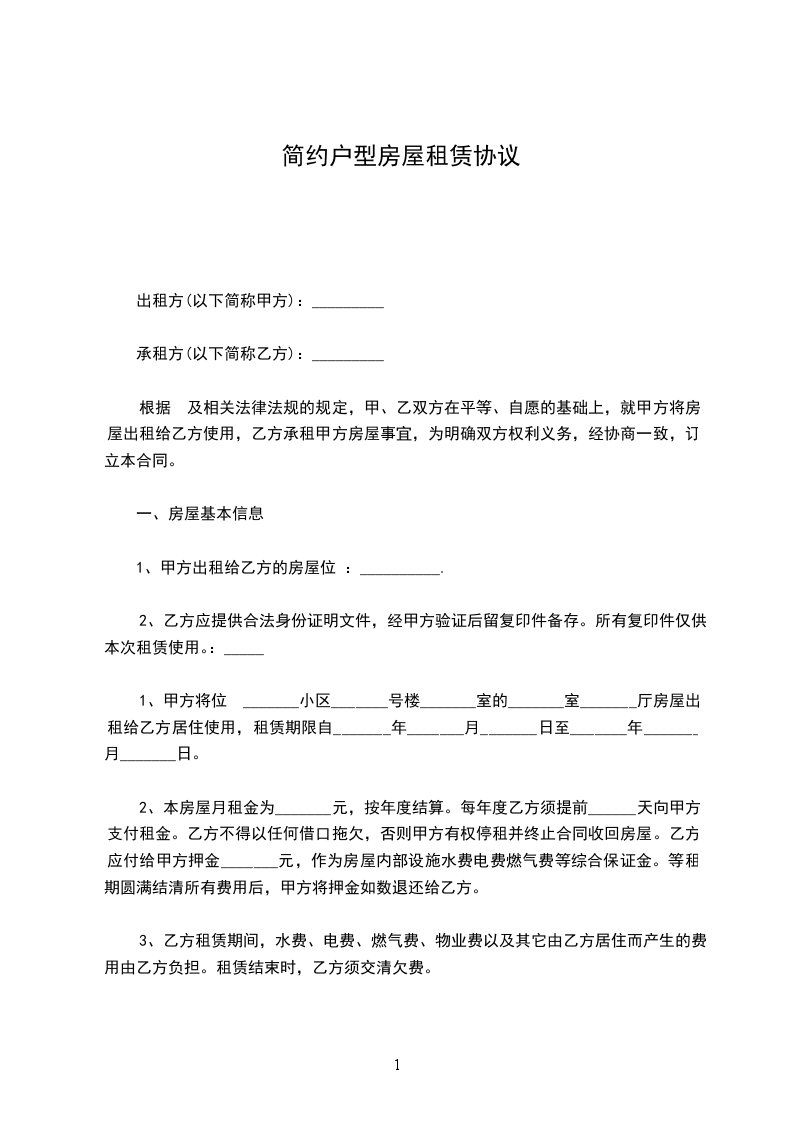 一、甲方将位于____市____街道___小区___号楼号的房屋出租给乙方居住使用,租赁期限自______年___月___日至____年___月___日,计___个月。