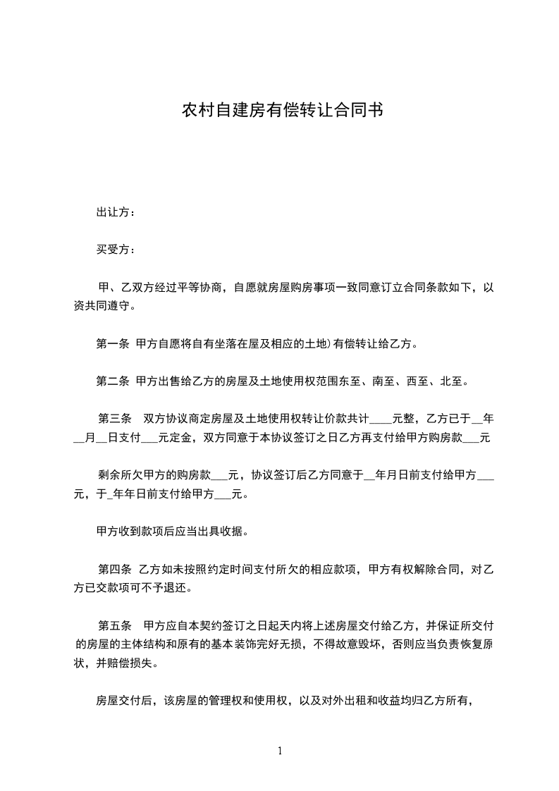 一、甲方将其位于房产一次性有偿转让给乙方,转让方式为出售。