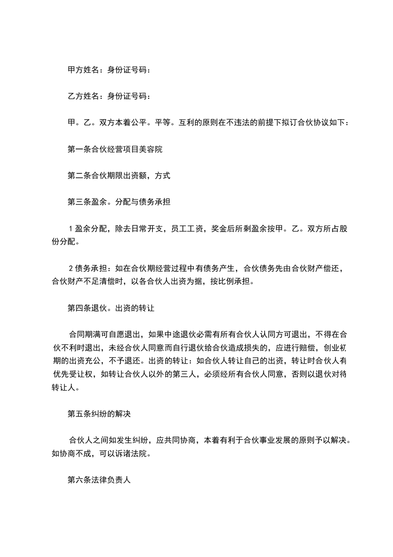 第一条合伙经营项目美容院