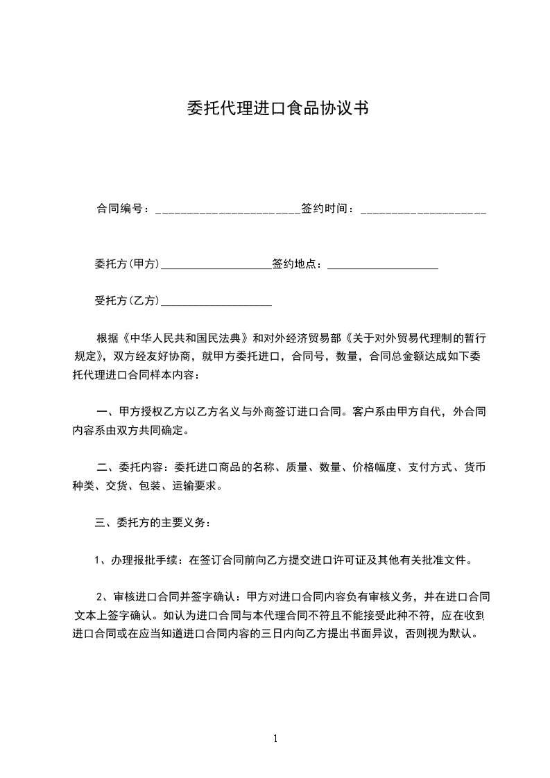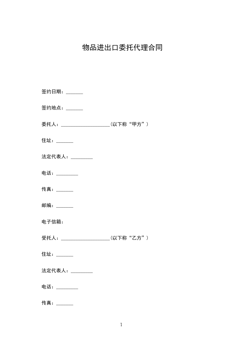 一、甲方委托乙方代理进口_________,乙方接受甲方的委托。