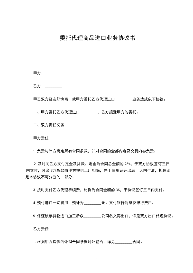 甲乙双方经友好协商,就甲方委托乙方代理进口_________业务达成以下协议: