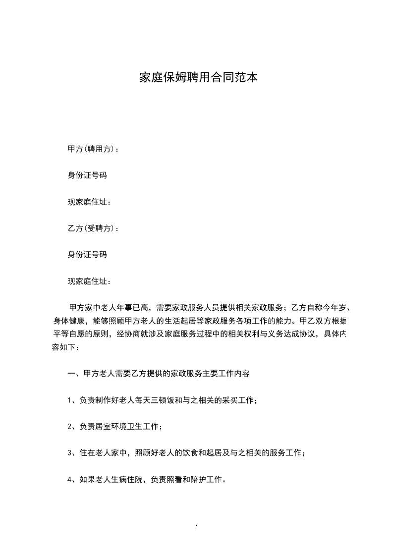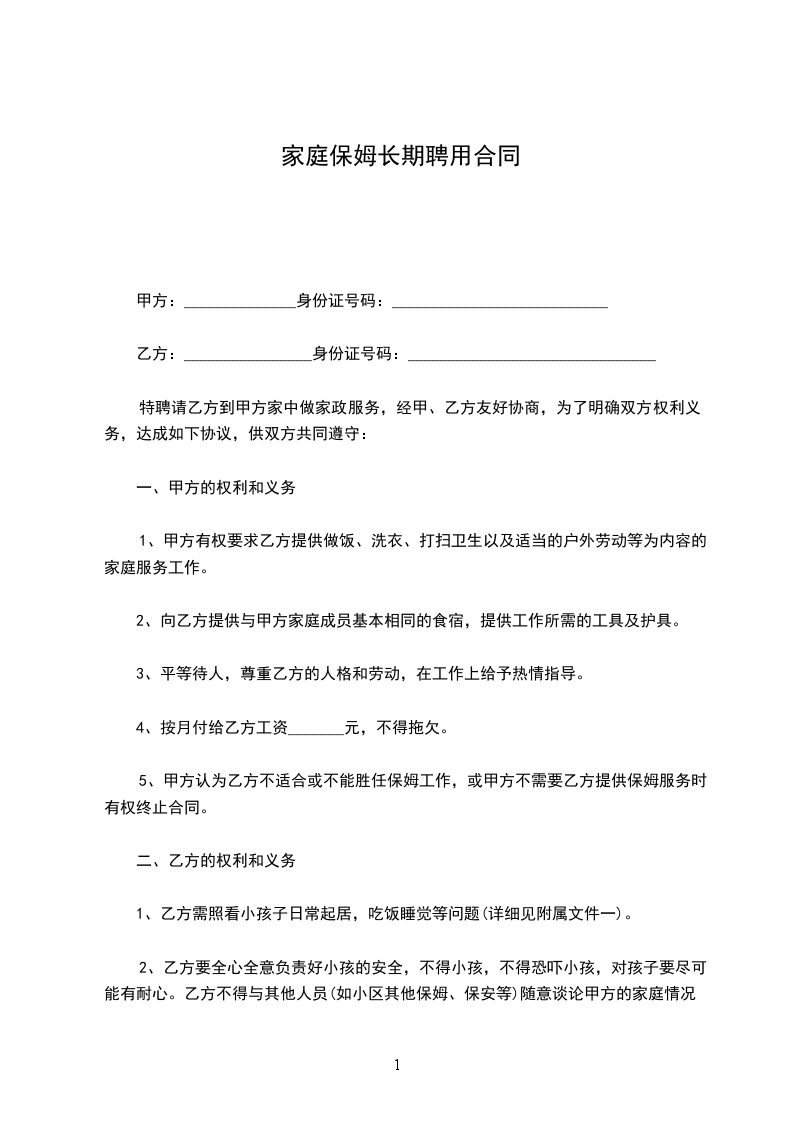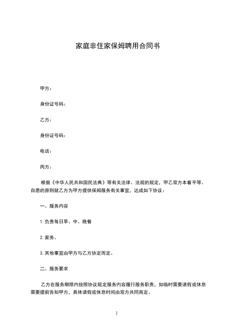 根据《民法典》等有关法律、法规的规定,甲乙双方本着平等、自愿的原则就乙方为甲方提供保姆服务有关事宜,达成如下协议: