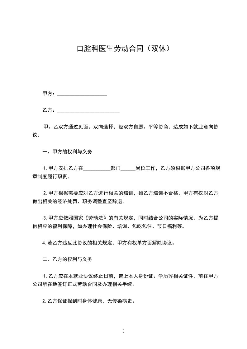 第二条乙方同意根据甲方工作需要,担任___岗位工作。