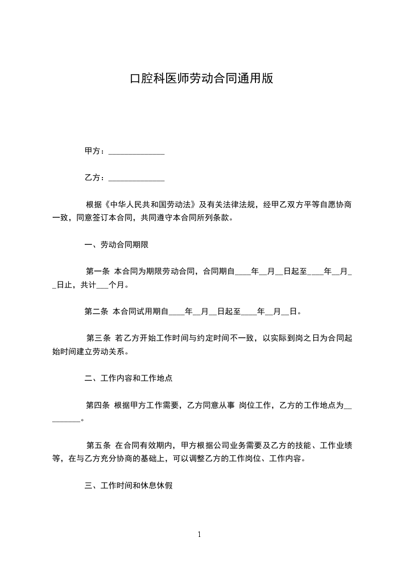 一、劳动合同期限