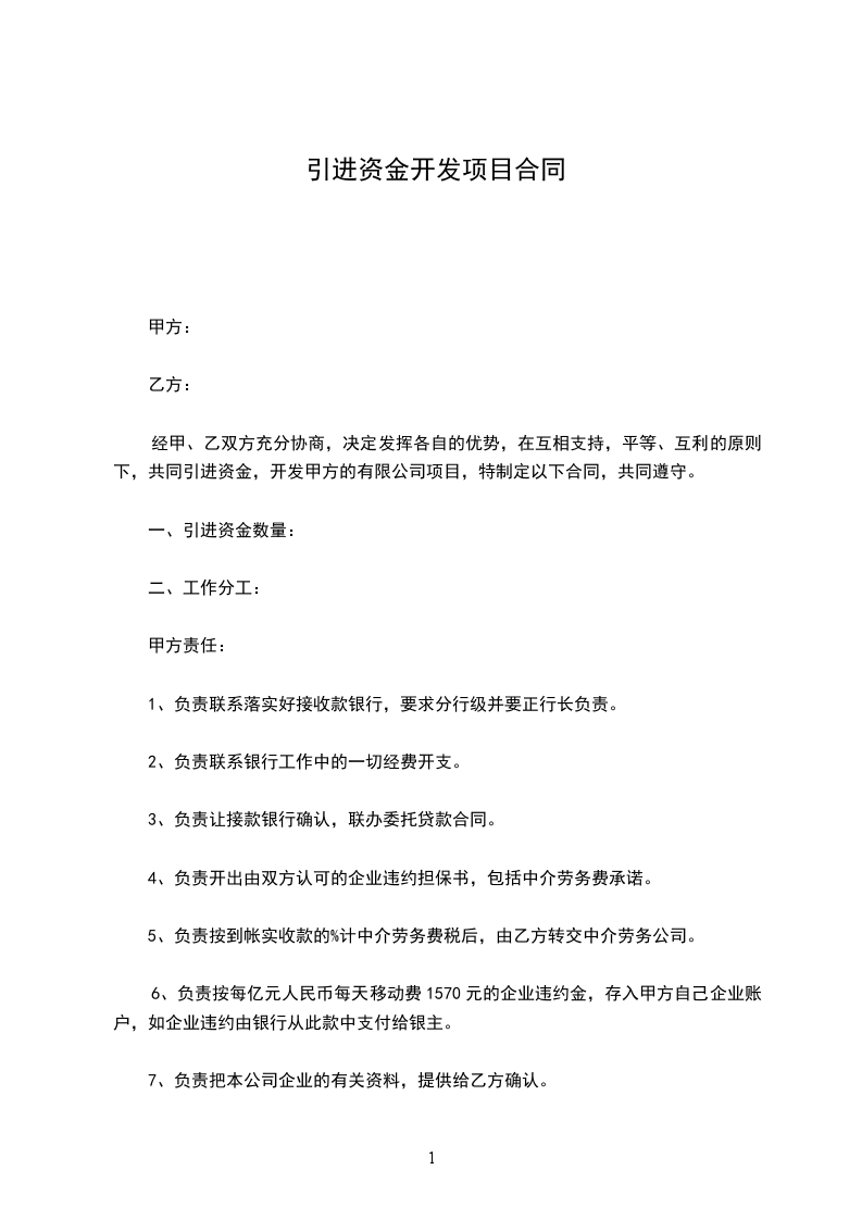 3、如果乙方引进资金不实,所造成的甲方的损失,乙方负责赔偿。