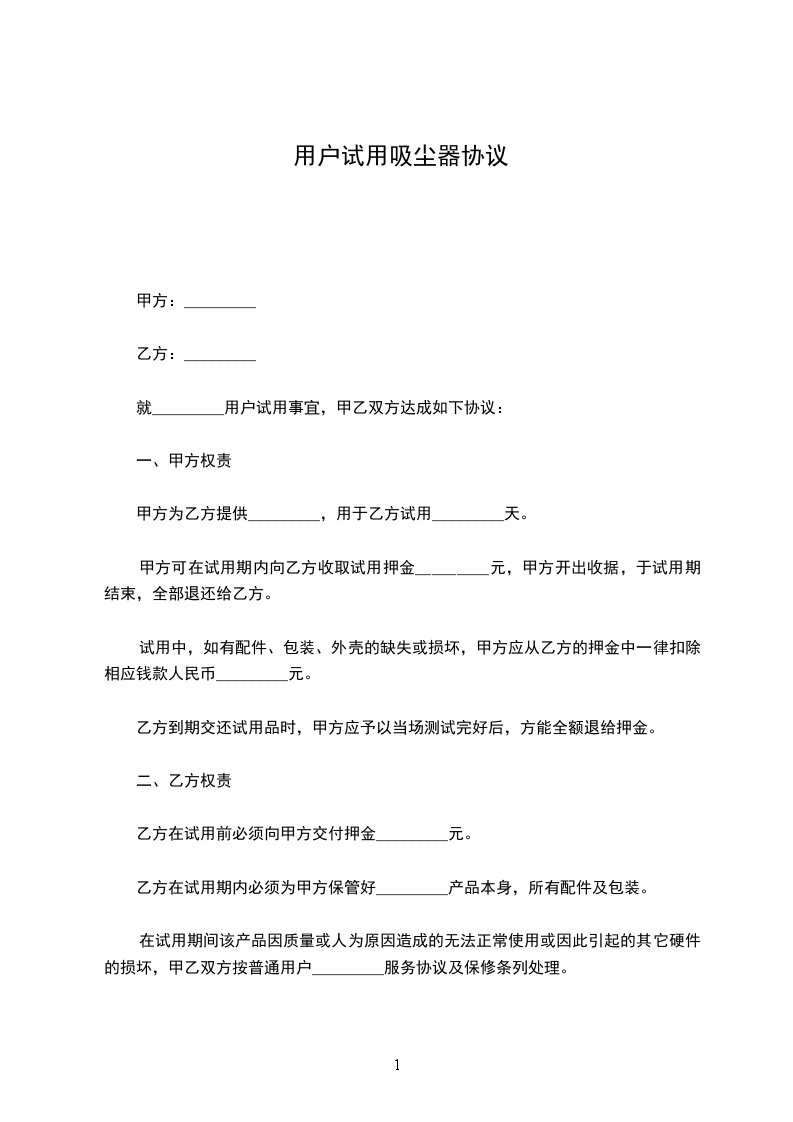 三、试用开始时间从签署用户试用协议的第二天生效。如果_________的试用表现让乙方满意,需要购买该试用品:统一价格为_________元。