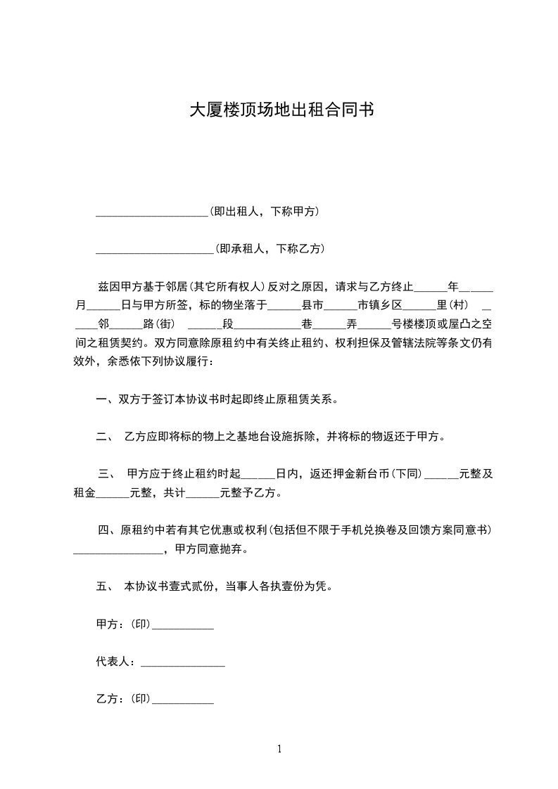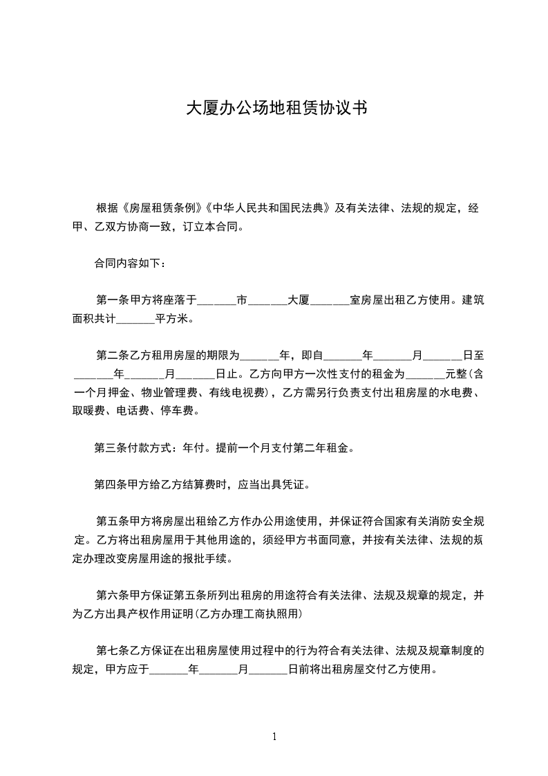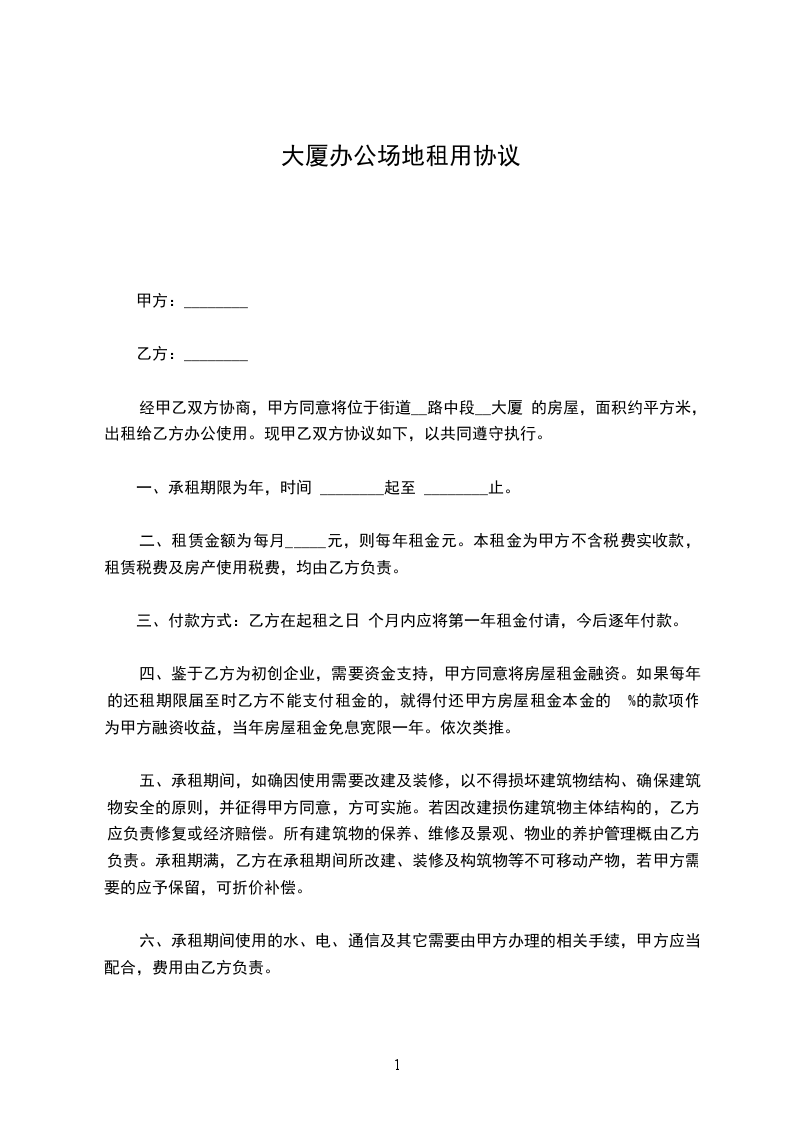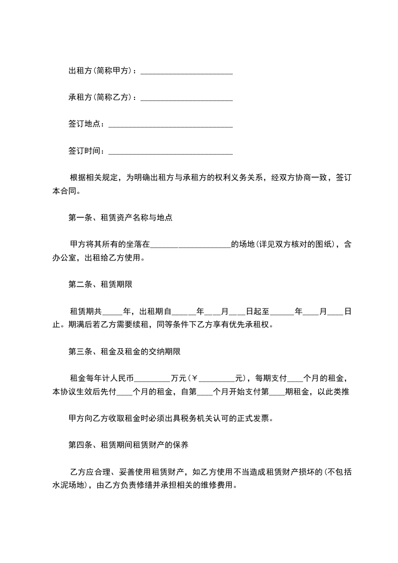 1、乙方交纳的场地管理费标准每月_____元/㎡,每月管理合计_____元。