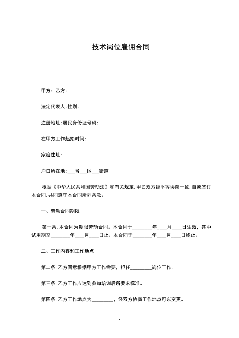 第一条.本合同为期限劳动合同。本合同于________年____月____日生效,其中试用期至________年____月____日止。本合同于________年____月____日终止。