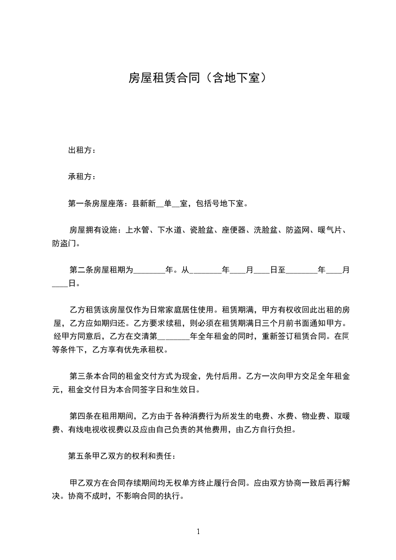 第一条房屋座落:县新新__单__室,包括号地下室。