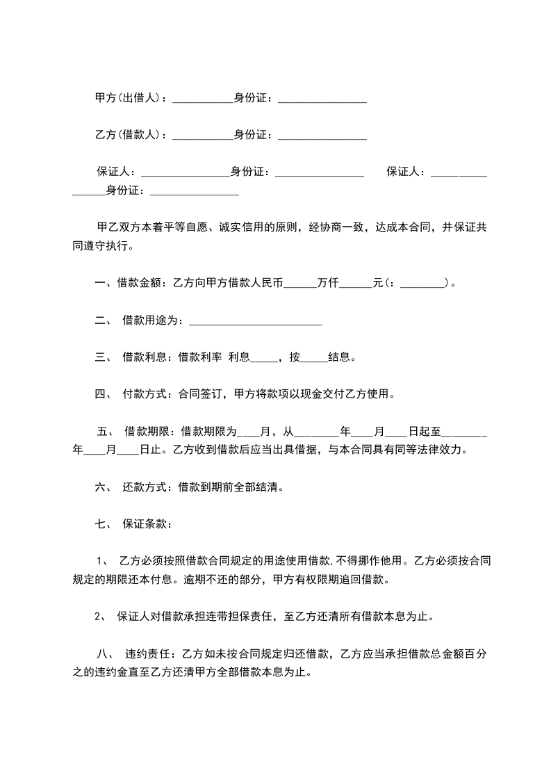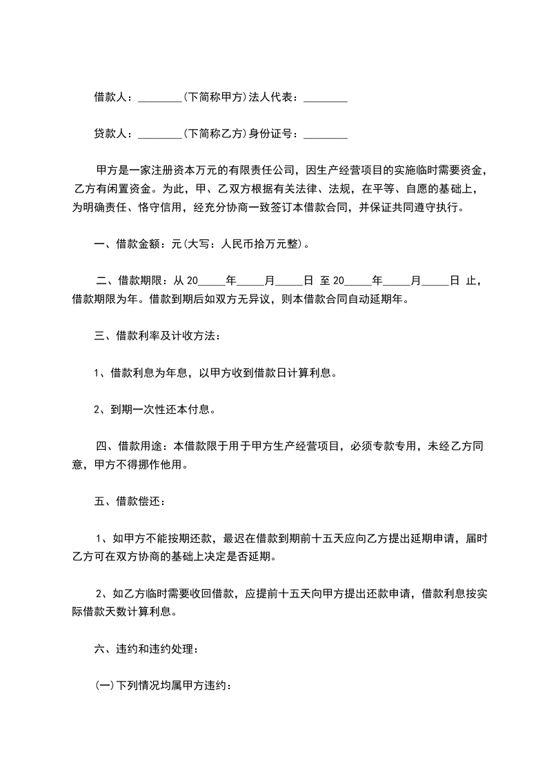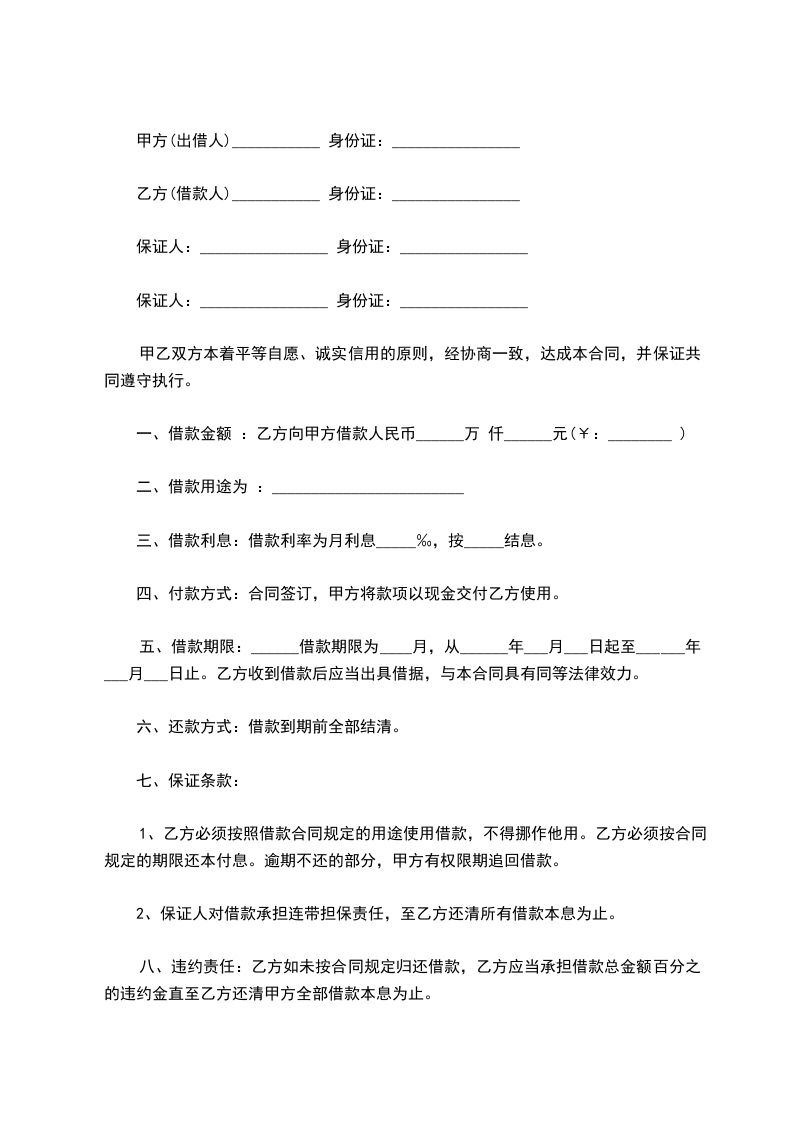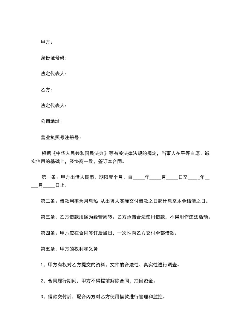 第一条:甲方出借人民币,期限壹个月,自_____年_____月_____日至_____年_____月_____日止。