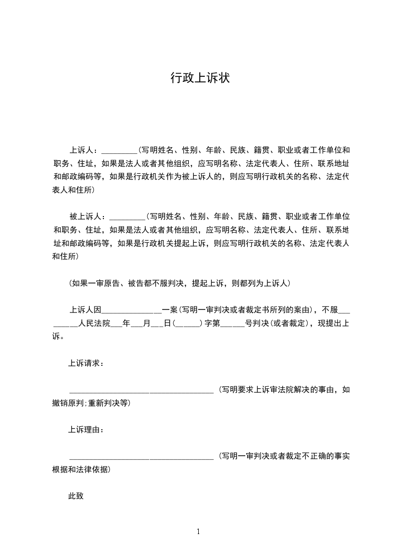 上诉人:_________(写明姓名、性别、年龄、民族、籍贯、职业或者工作单位和职务、住址,如果是法人或者其他组织,应写明名称、法定代表人、住所、联系地址和邮政编码等,如果是行政机关作为被上诉人的,则应写明行政机关的名称、法定代表人和住所)