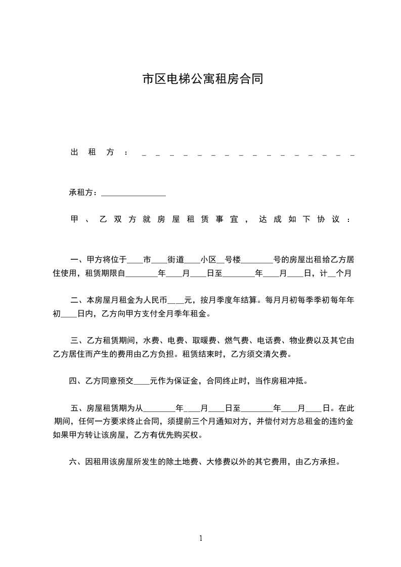 一、甲方将位于____市____街道____小区__号楼________号的房屋出租给乙方居住使用,租赁期限自________年____月____日至________年____月____日,计__个月。