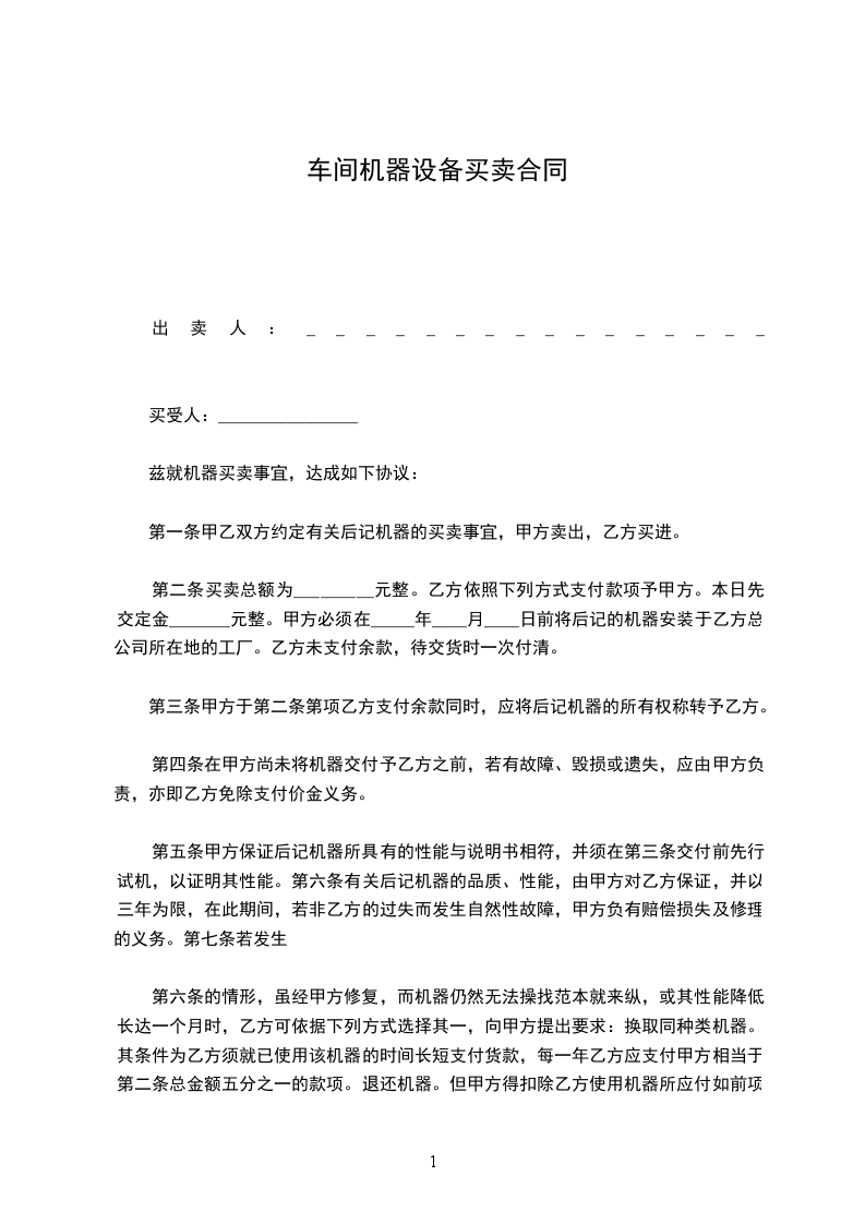 兹就机器买卖事宜,达成如下协议:
