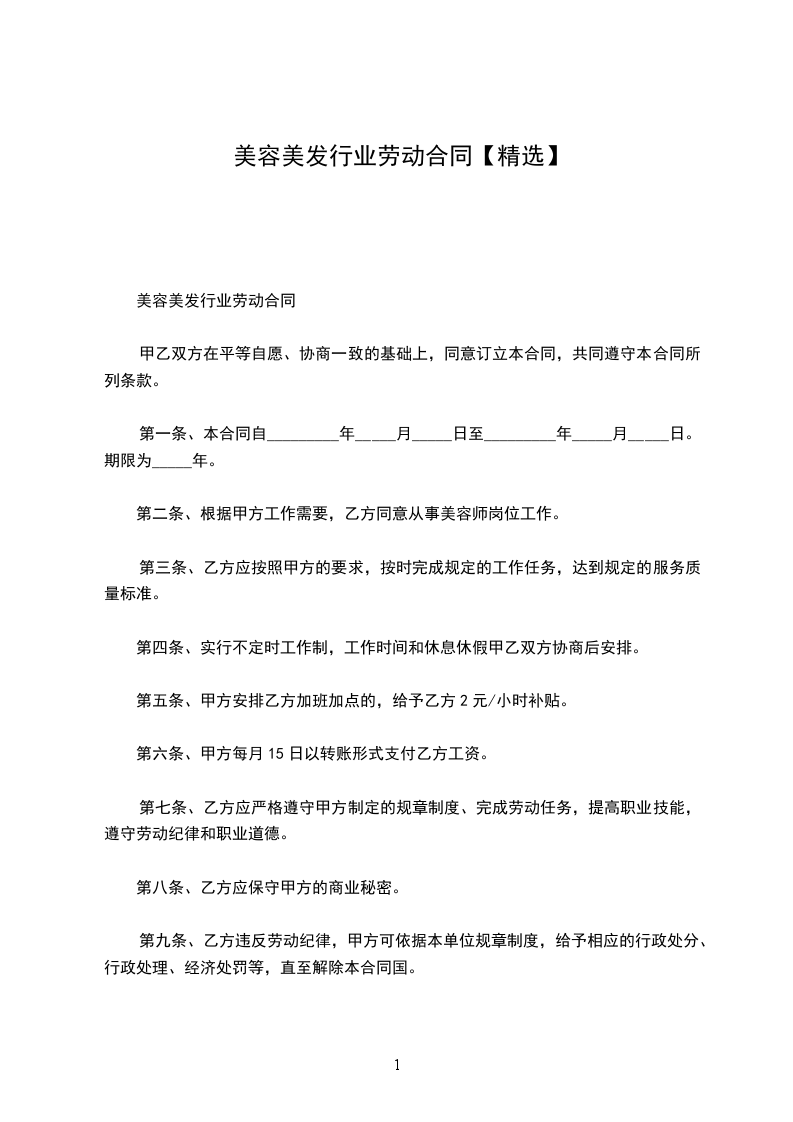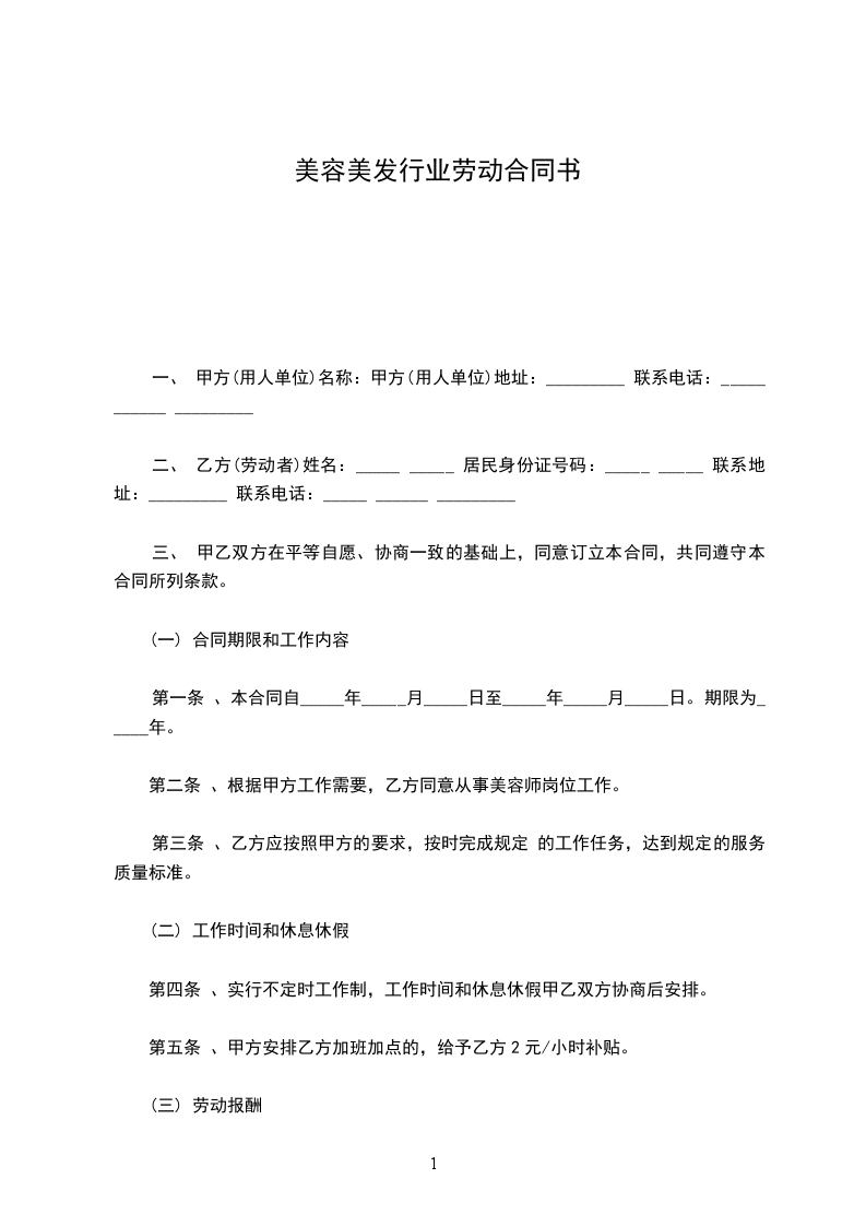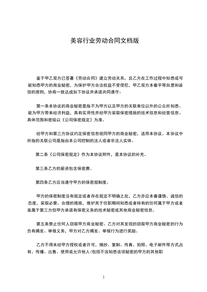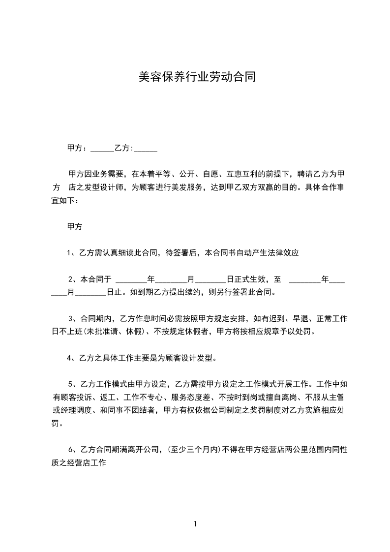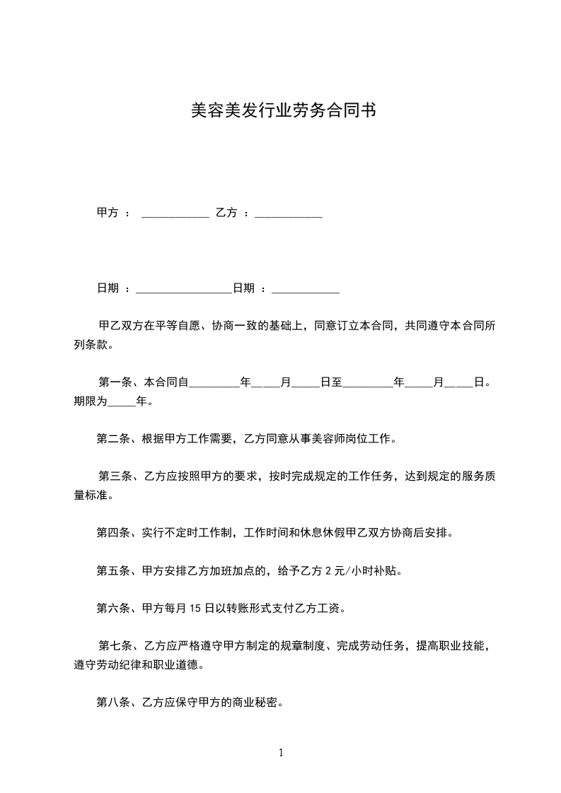 第二条、根据甲方工作需要,乙方同意从事美容师岗位工作。