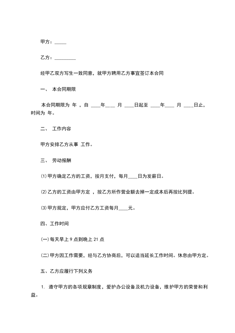 第十条、订立劳动合同时,甲方不得以任何形式向乙方牟取不正当利益。