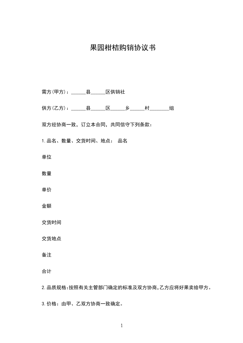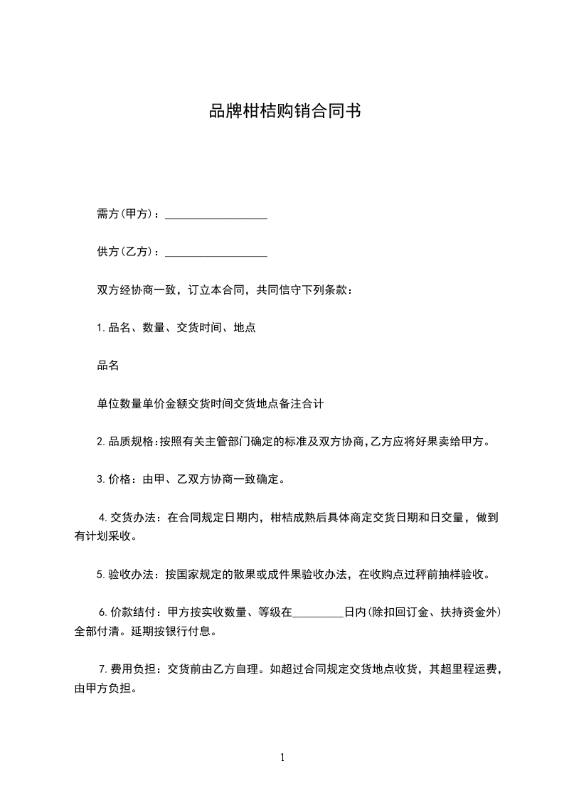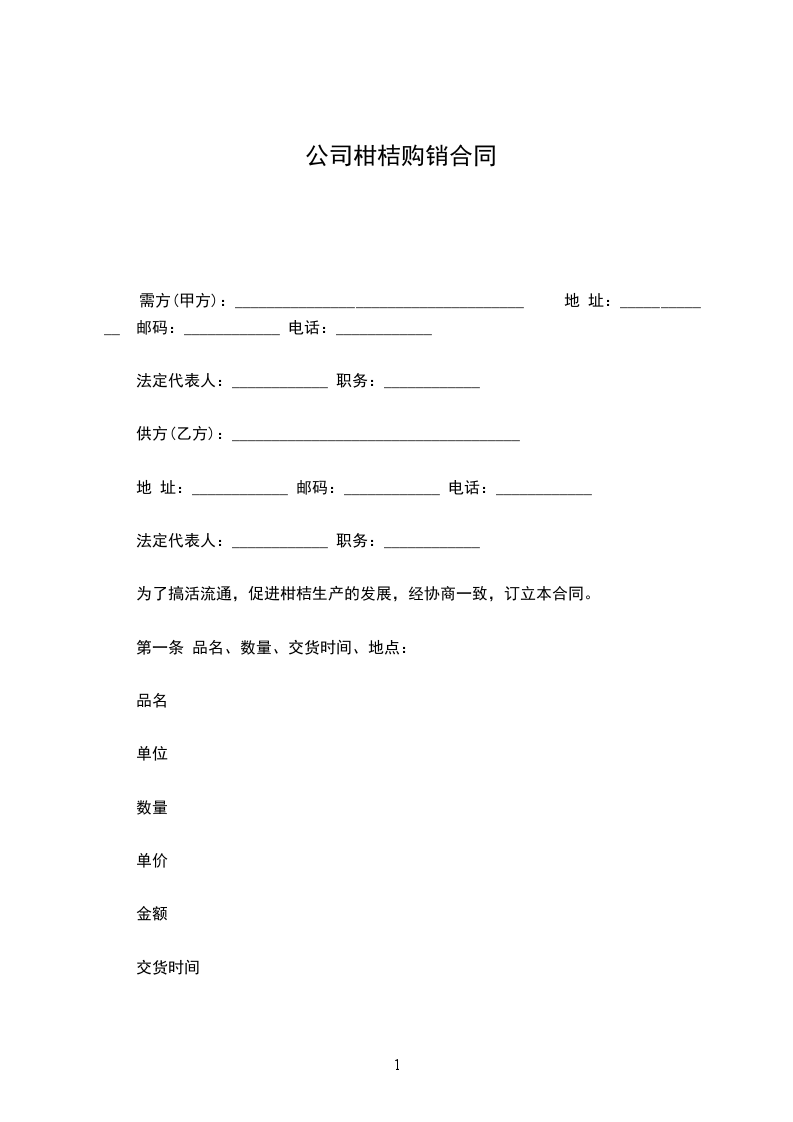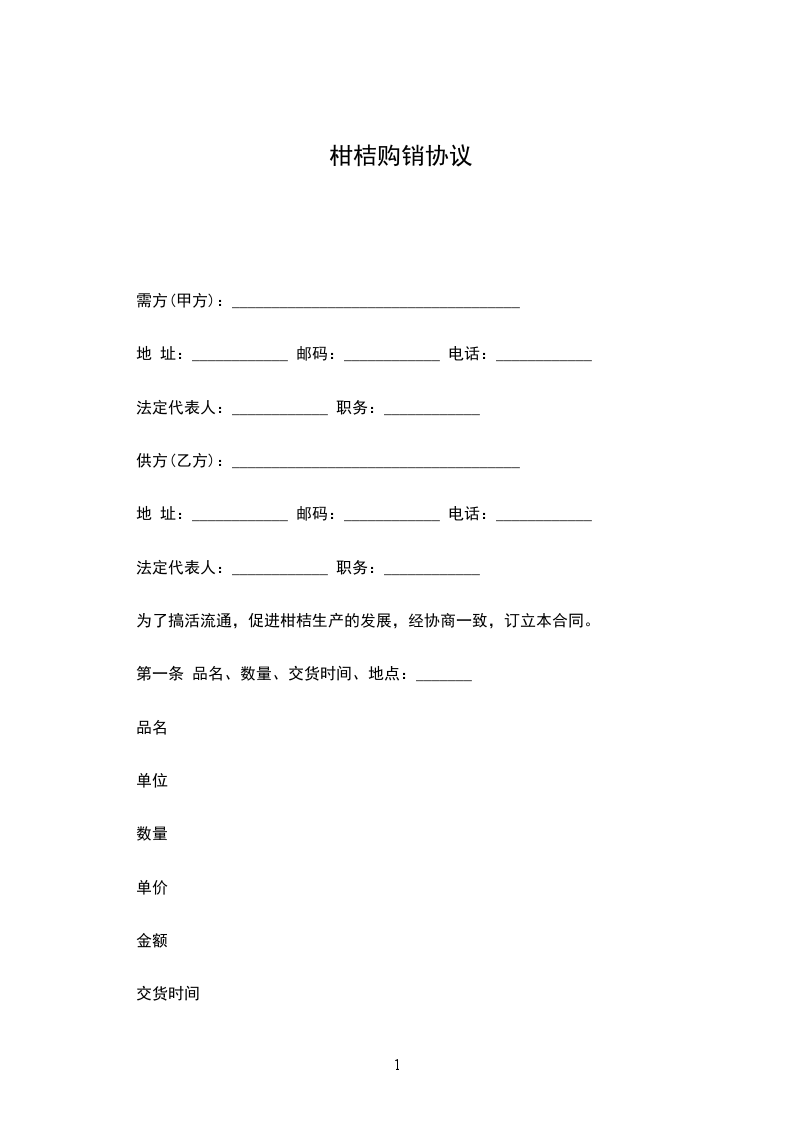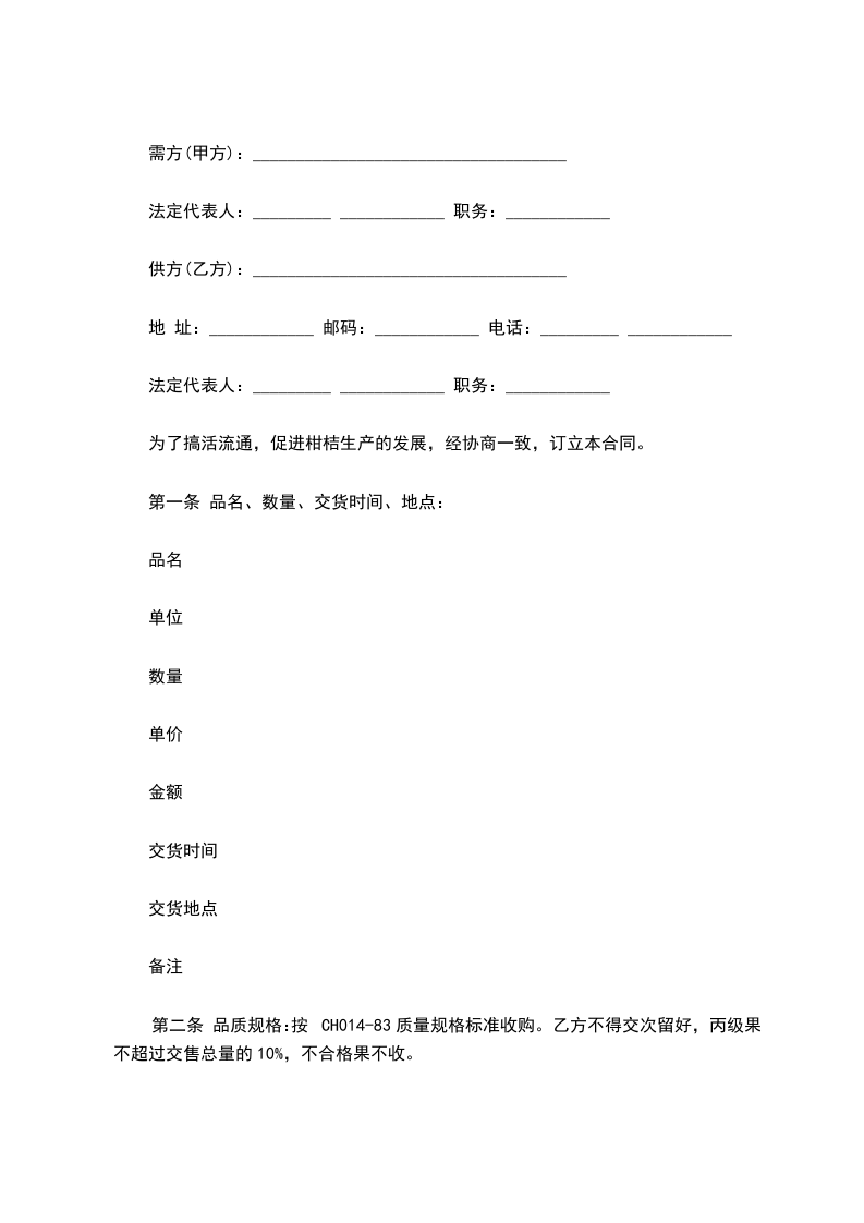 为了搞活流通,促进柑桔生产的发展,经协商一致,订立本合同。